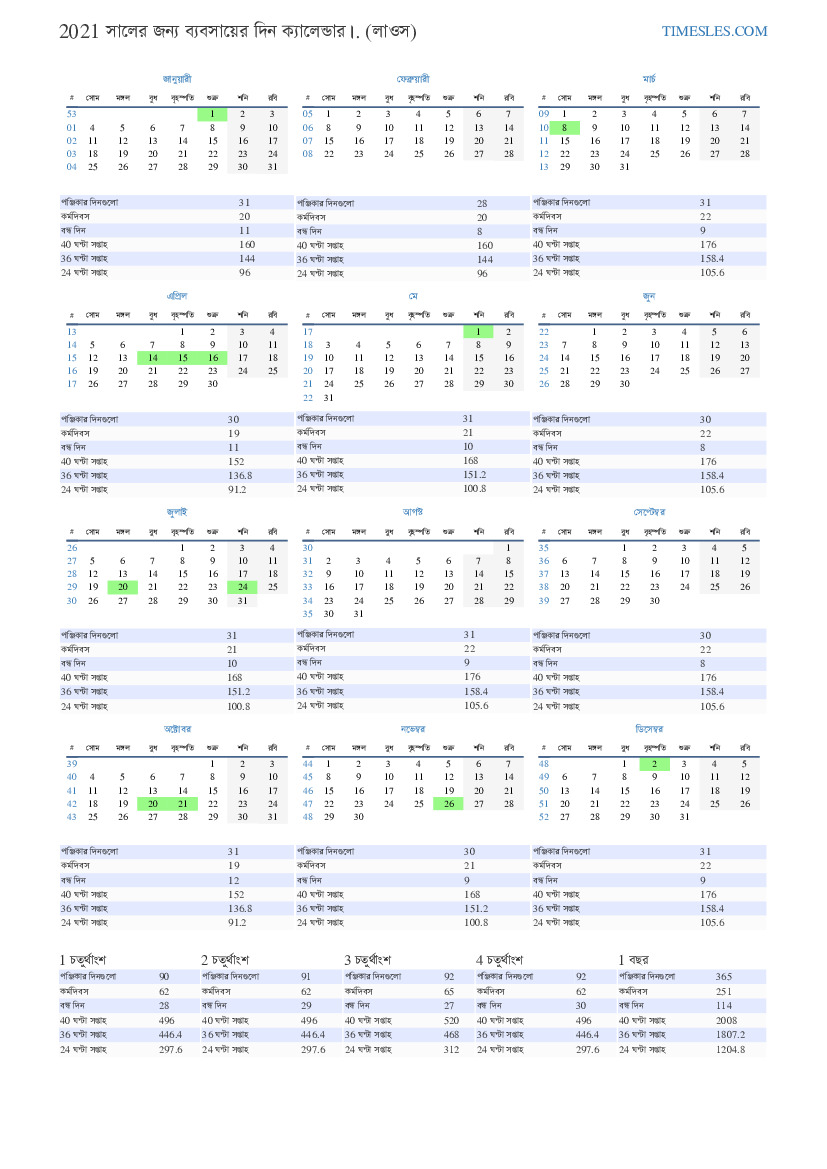 | 40 ঘন্টা সপ্তাহ | 168 |