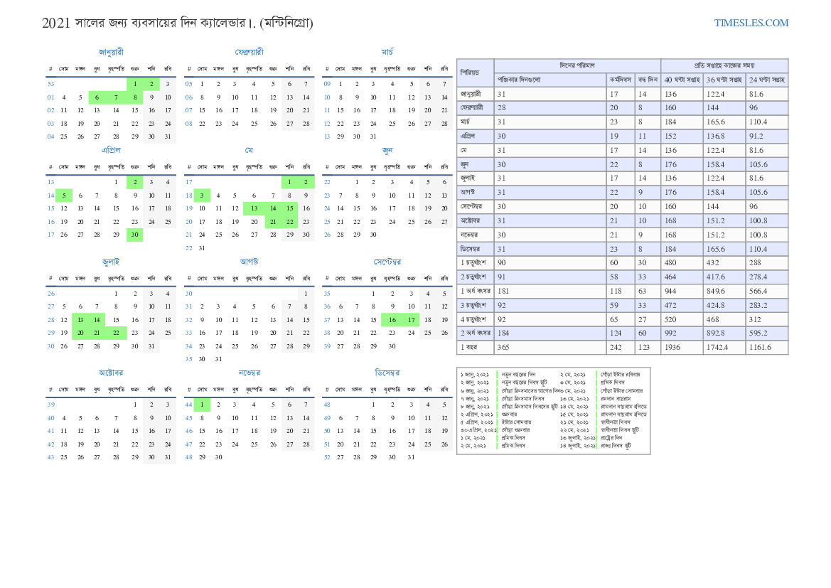 | 40 ঘন্টা সপ্তাহ | 168 |
