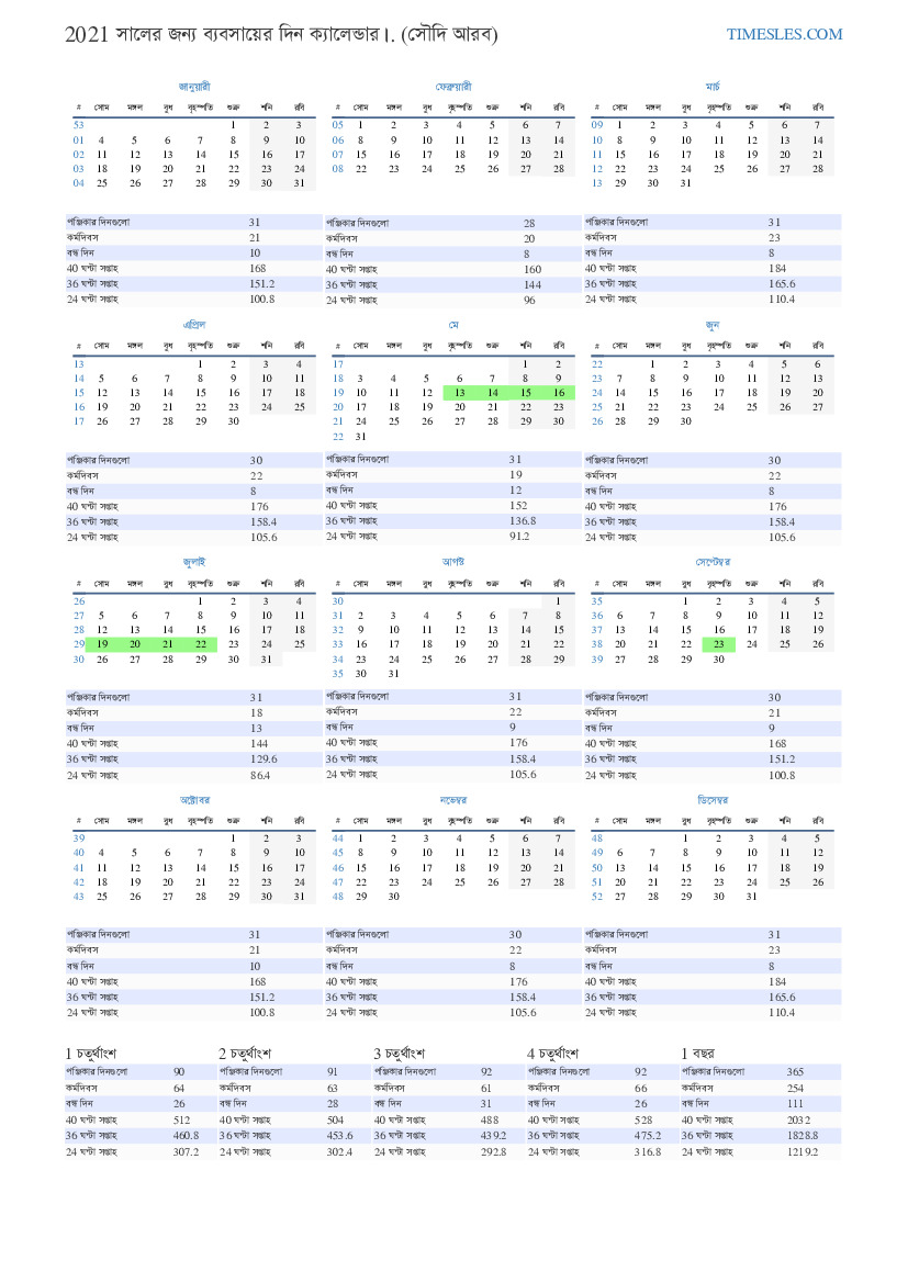 | 40 ঘন্টা সপ্তাহ | 168 |