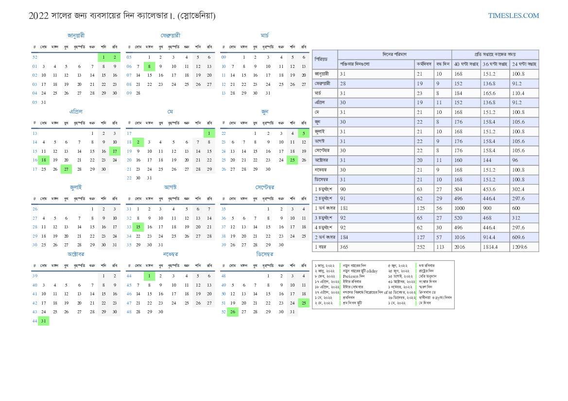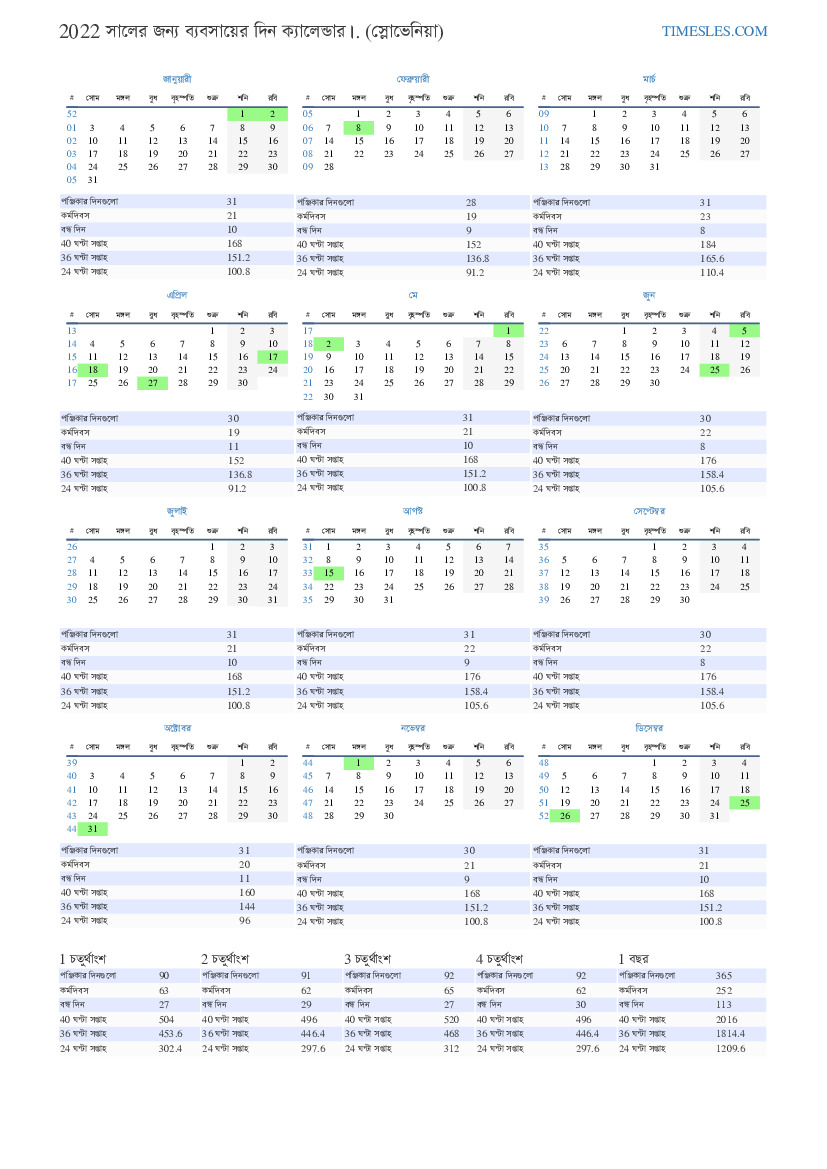 | 40 ঘন্টা সপ্তাহ | 168 |