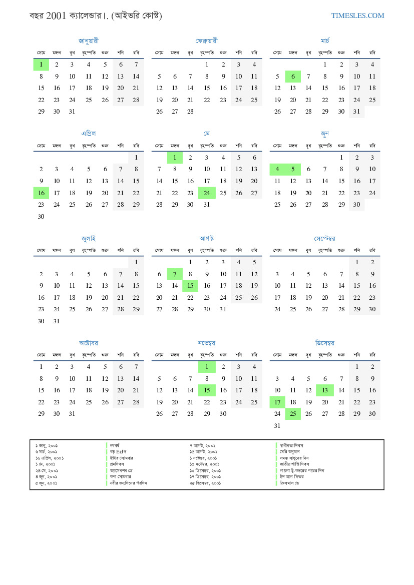 ১ নভেম্বর, ২০০১ সমস্ত সাধুদের দিন