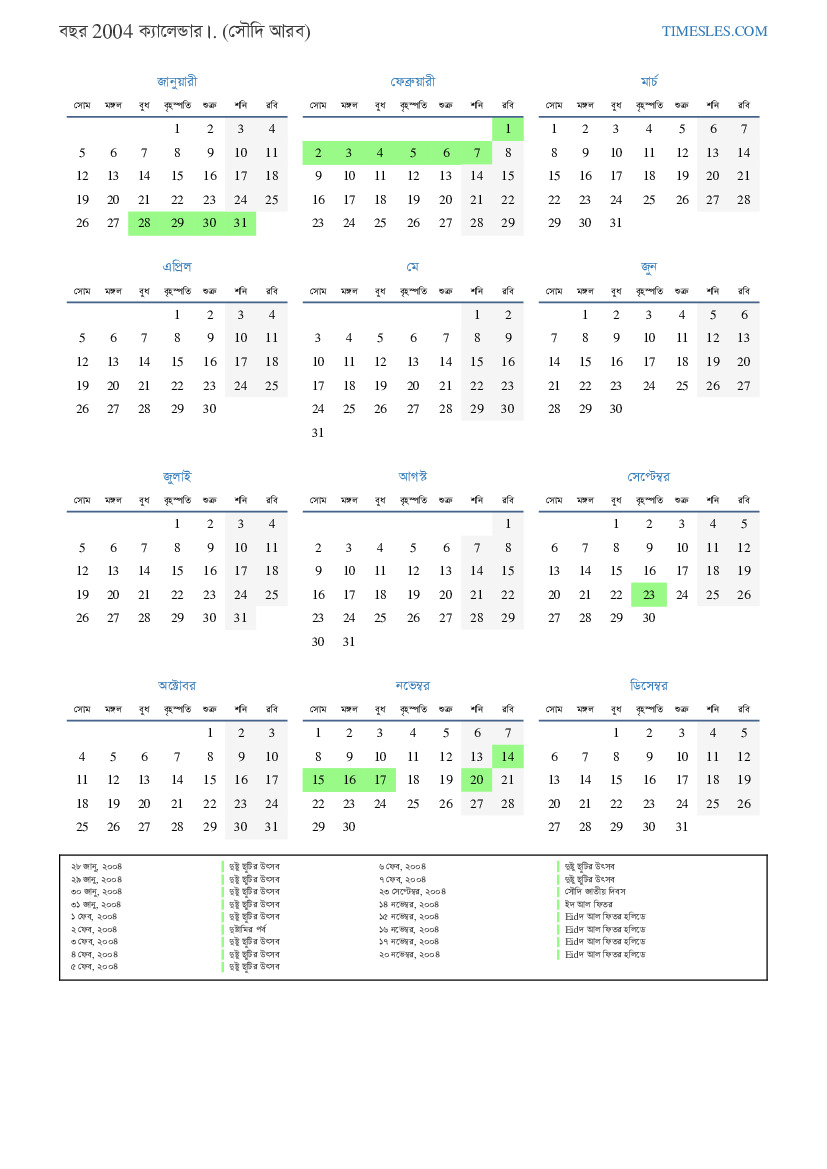 ২০ নভেম্বর, ২০০৪ Eidদ আল ফিতর হলিডে