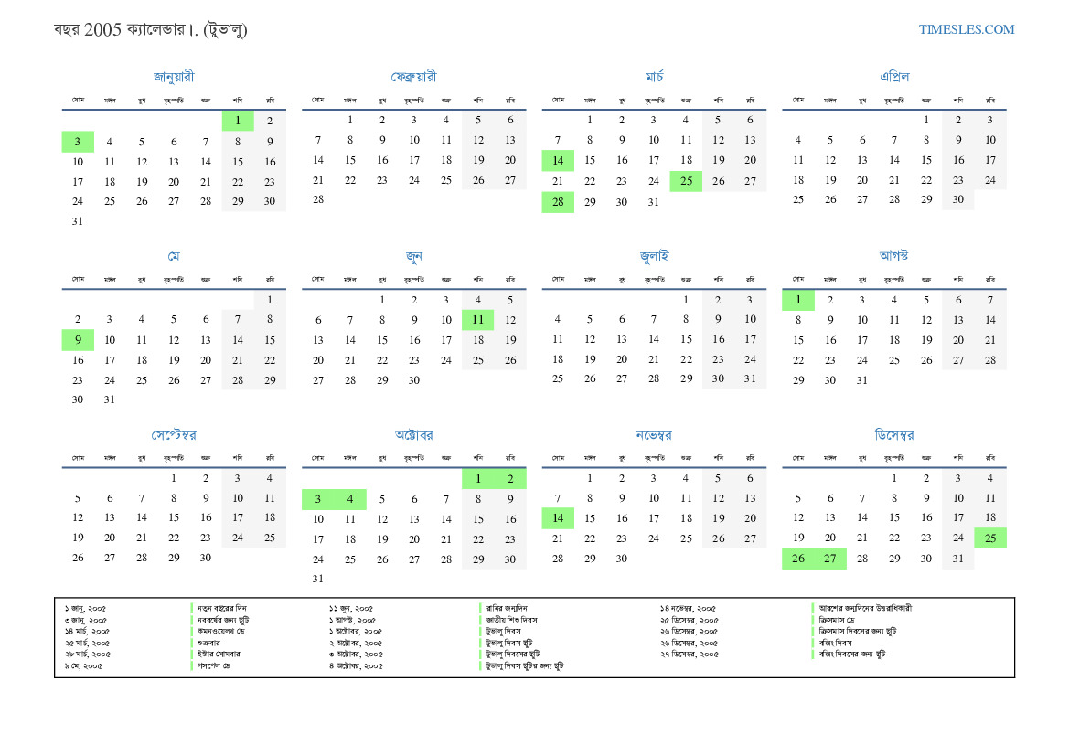 ২ অক্টোবর, ২০০৫ টুভালু দিবস ছুটি