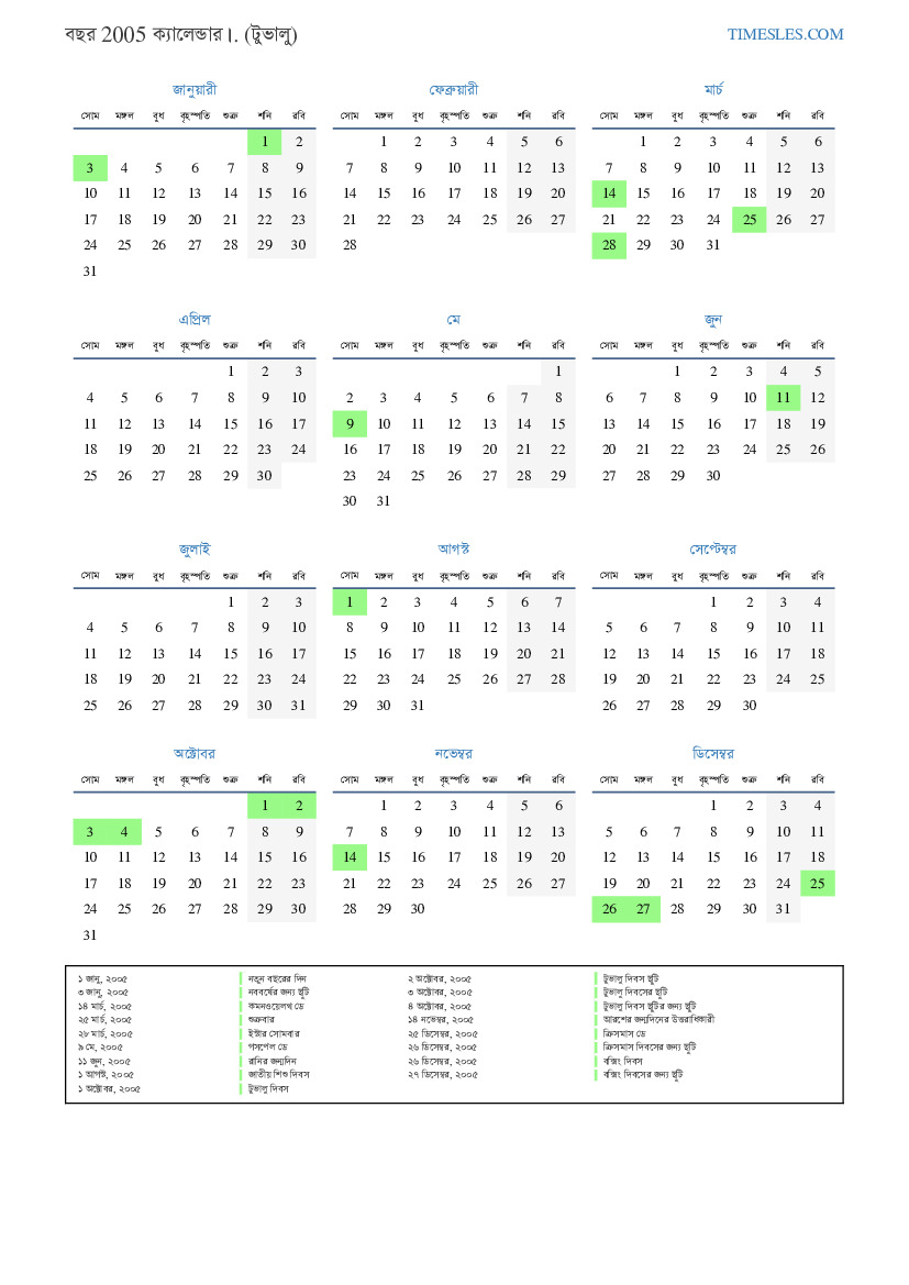 ৩ অক্টোবর, ২০০৫ টুভালু দিবসের ছুটি