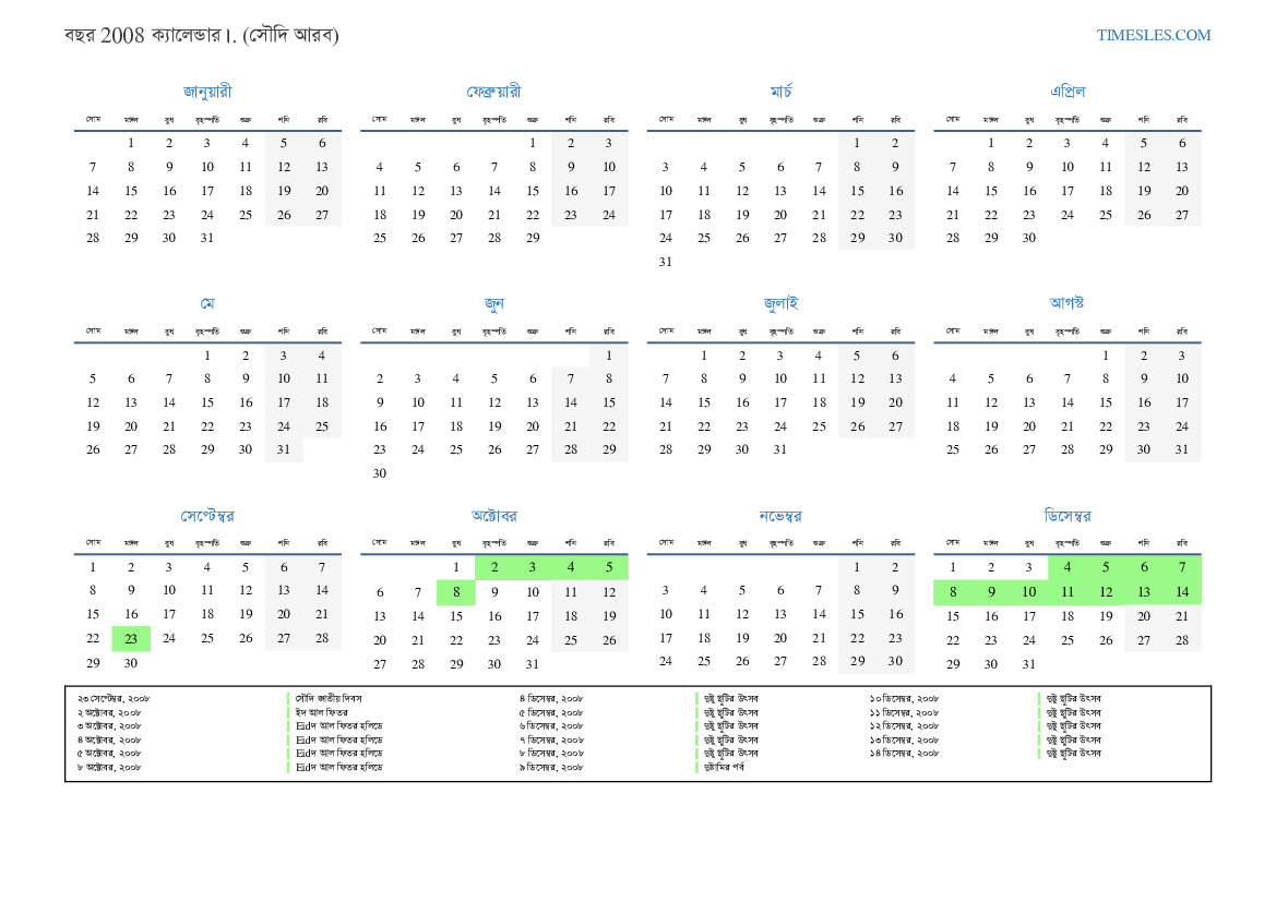 ৮ অক্টোবর, ২০০৮ Eidদ আল ফিতর হলিডে