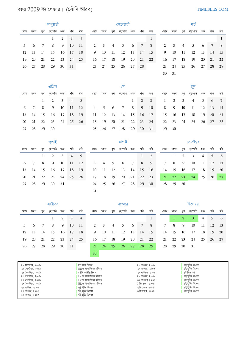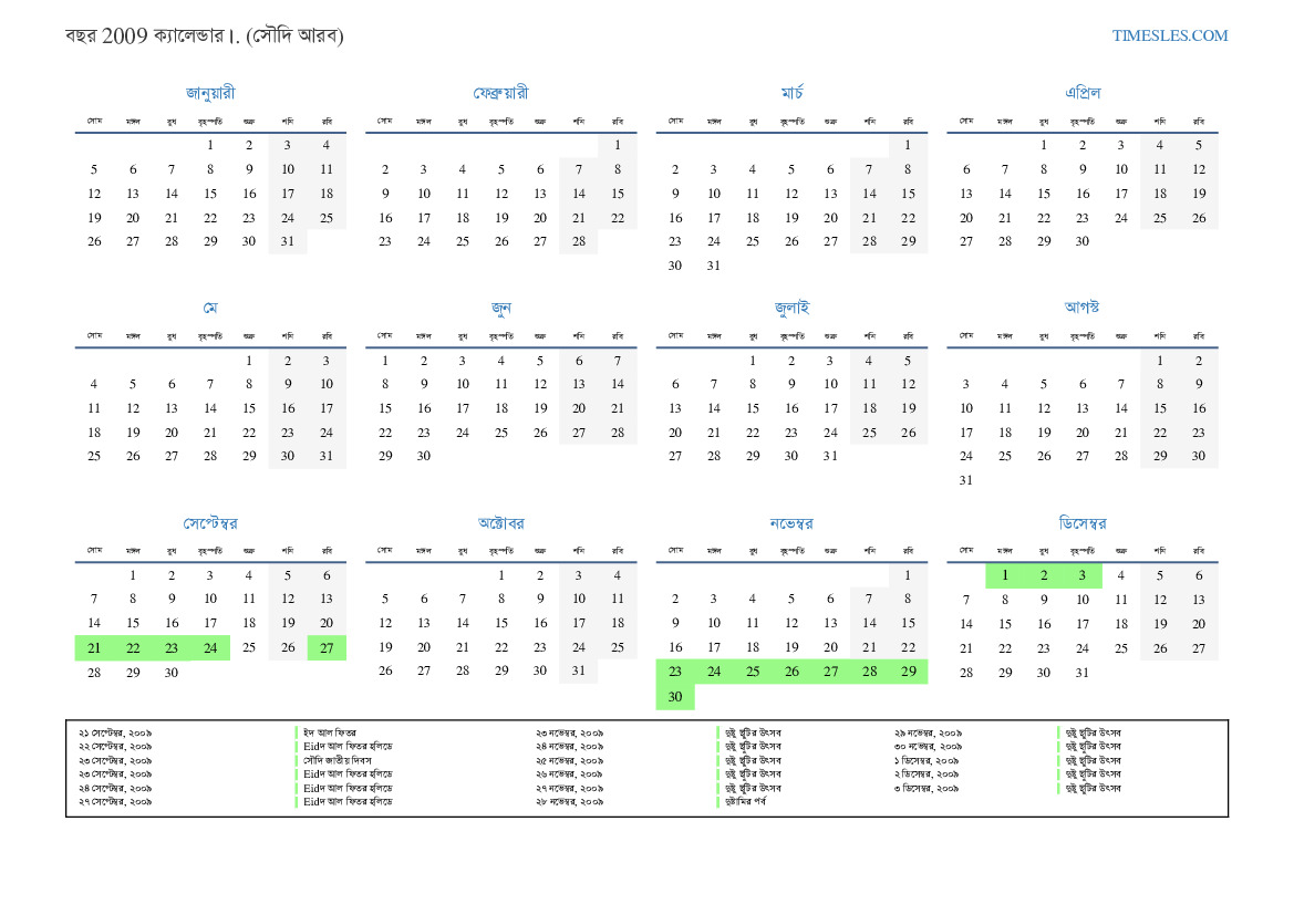২৬ সেপ্টেম্বর, ২০০৯ Eidদুল ফিতর হলিডে (কেবলমাত্র সরকারী খাত)