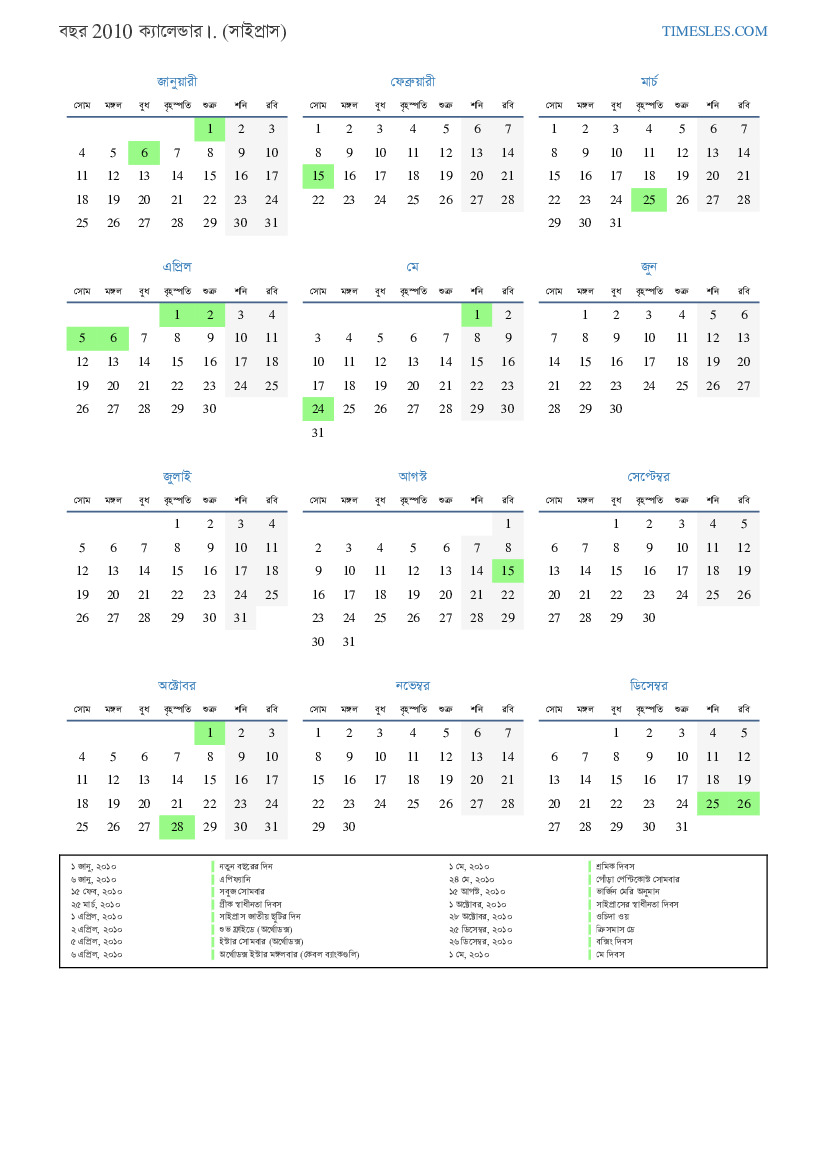 ৬ এপ্রিল, ২০১০ অর্থোডক্স ইস্টার মঙ্গলবার (কেবল ব্যাংকগুলি)