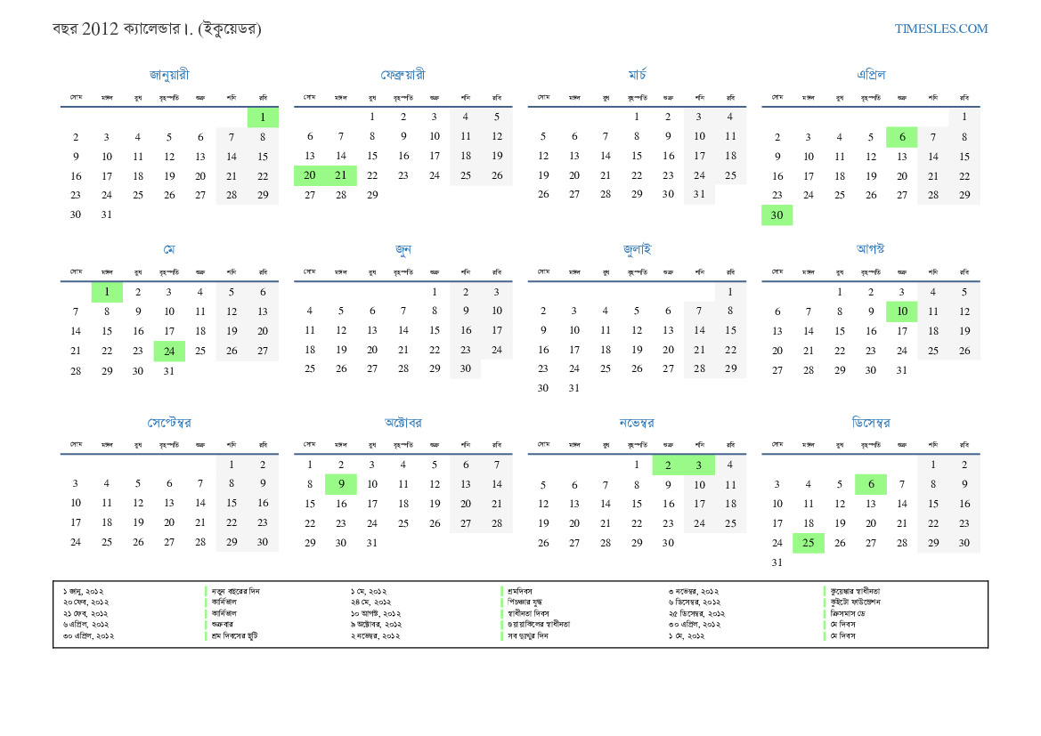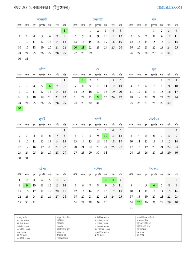৩০ এপ্রিল, ২০১২ শ্রম দিবসের ছুটি