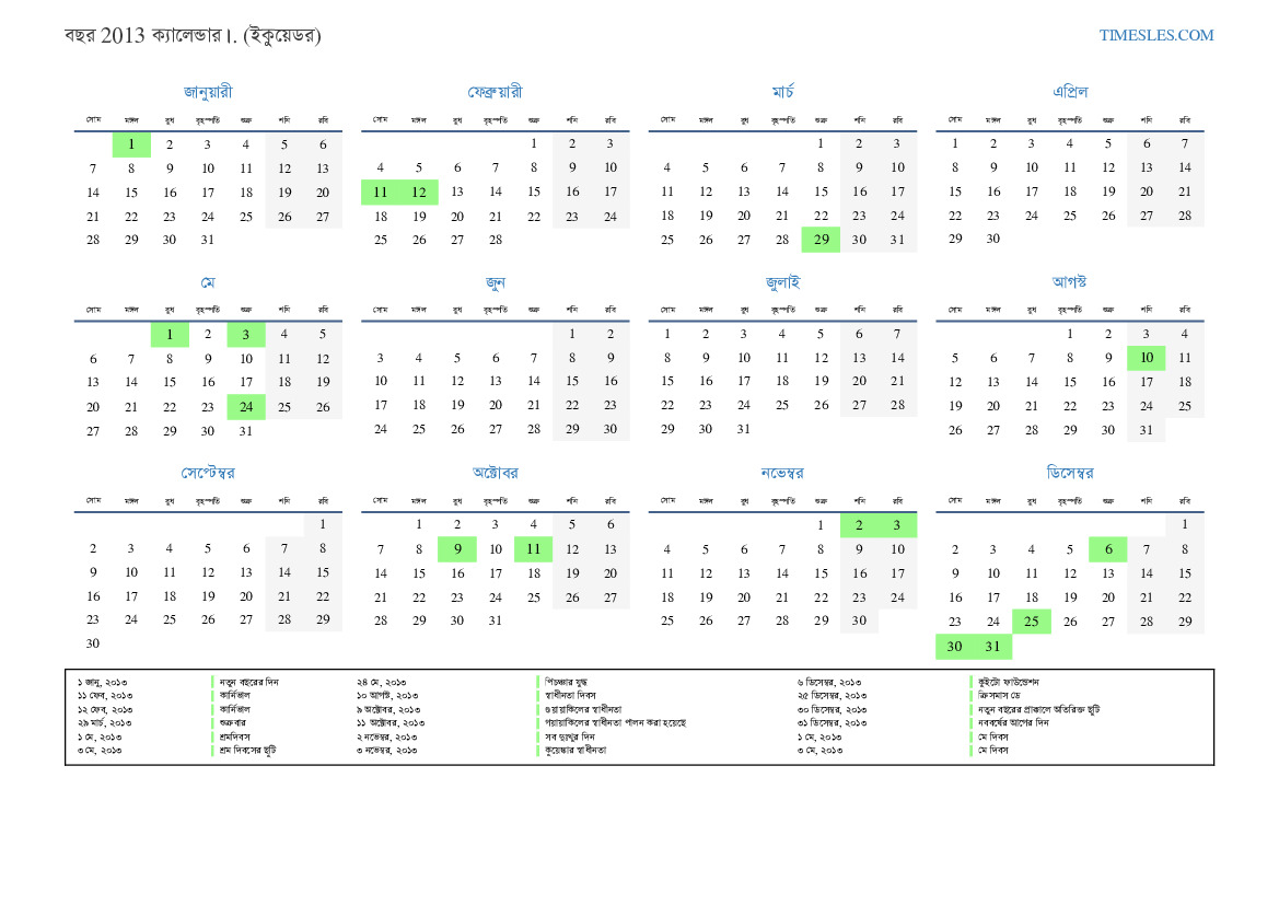 ৩ মে, ২০১৩ শ্রম দিবসের ছুটি