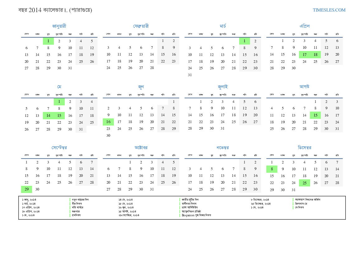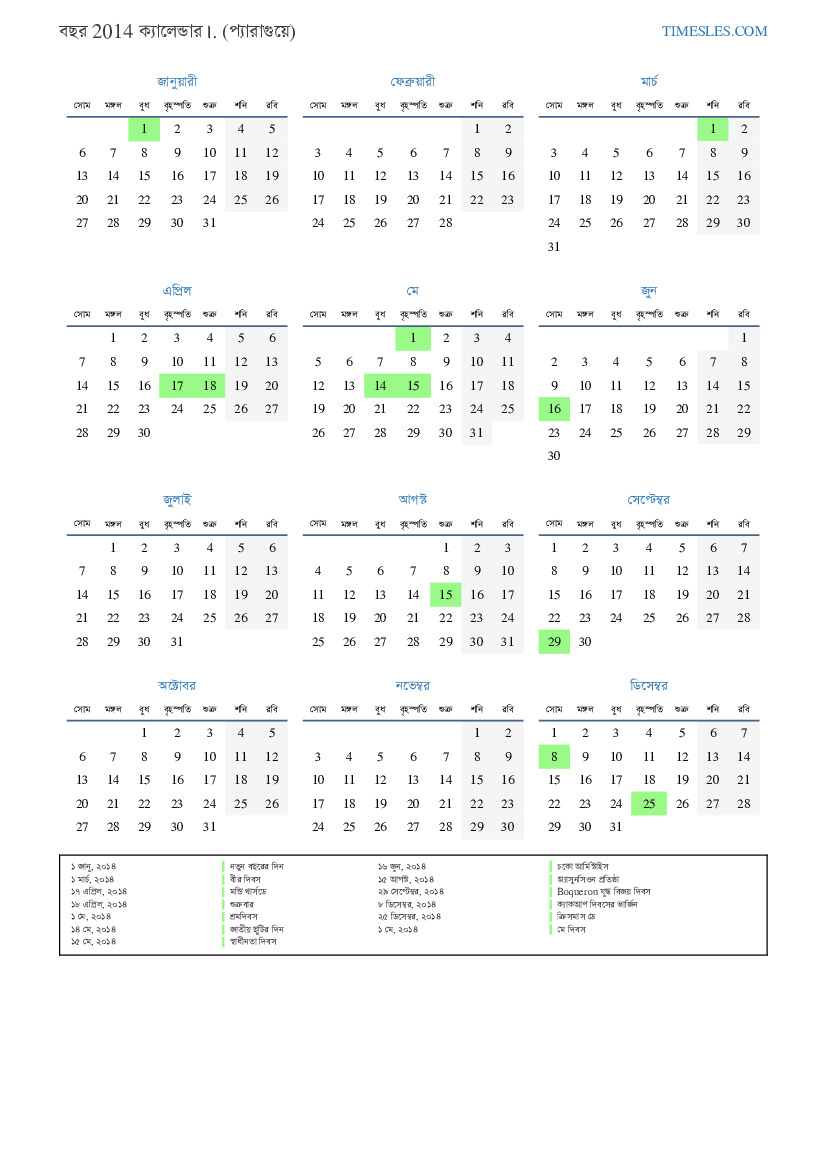 ১৪ মে, ২০১৪ জাতীয় ছুটির দিন