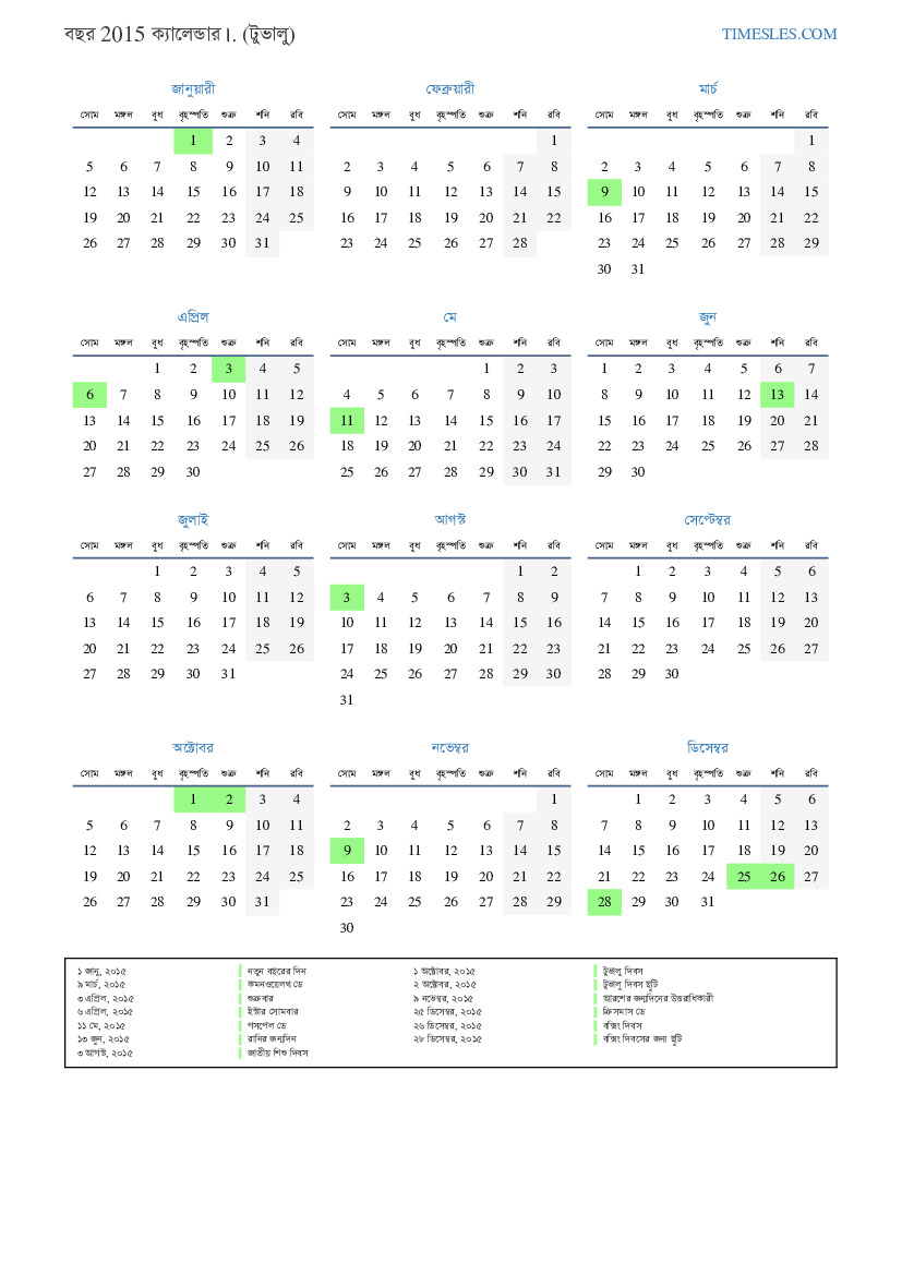 ২ অক্টোবর, ২০১৫ টুভালু দিবস ছুটি