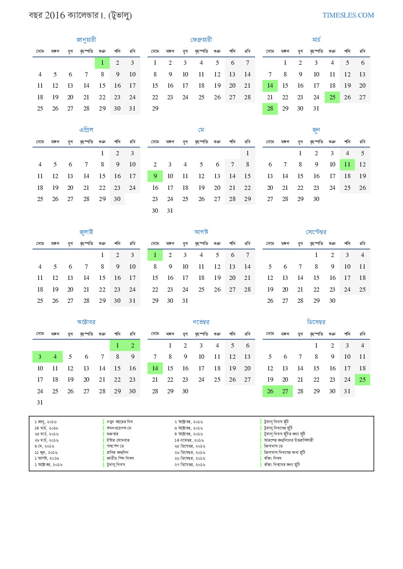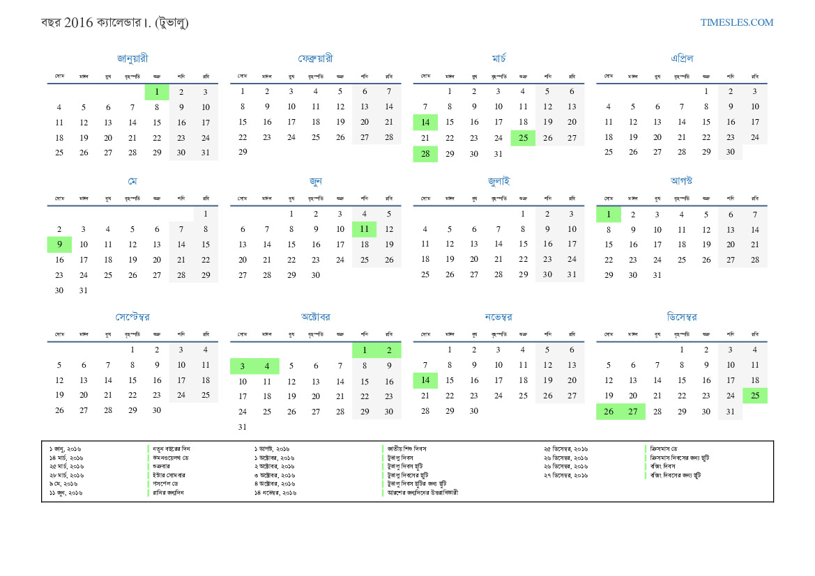 ২ অক্টোবর, ২০১৬ টুভালু দিবস ছুটি