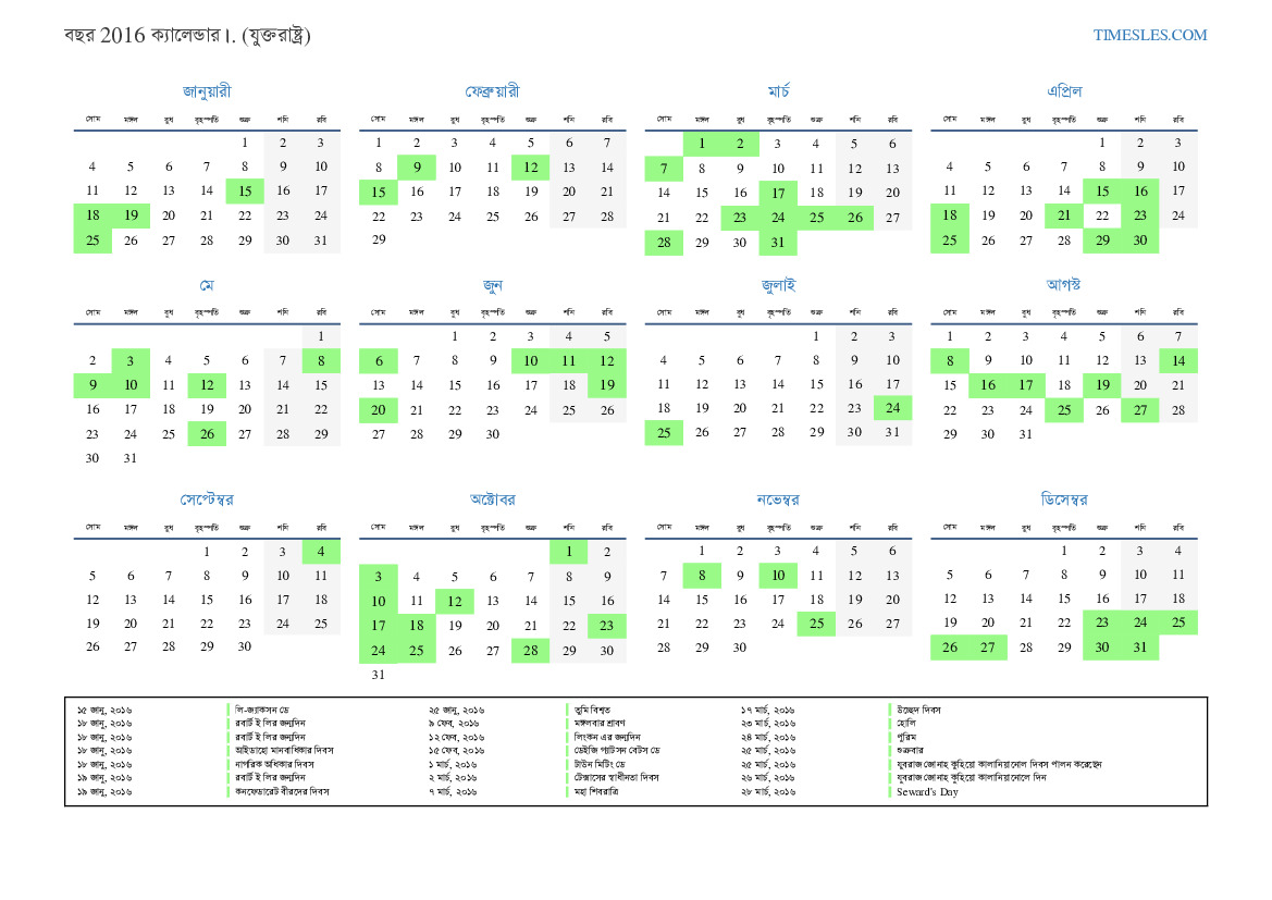 ২৫ নভেম্বর, ২০১৬ রাষ্ট্রীয় ছুটি