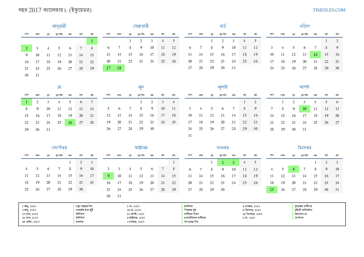 ২ জানু, ২০১৭ নববর্ষের জন্য ছুটি