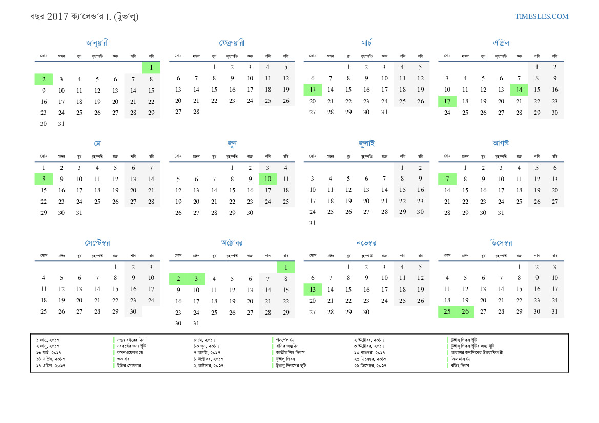 ২ অক্টোবর, ২০১৭ টুভালু দিবসের ছুটি