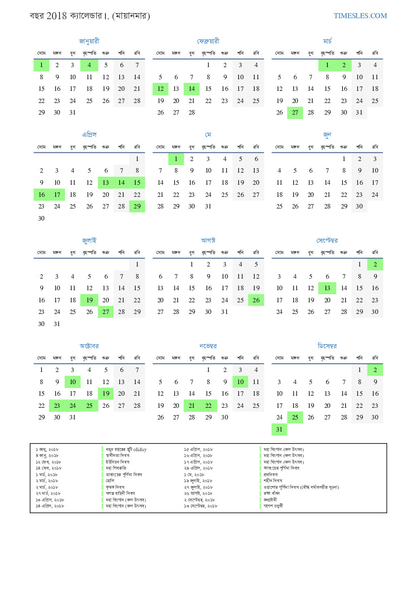 ১ জানু, ২০১৮ নতুন বছরের ছুটি oliday