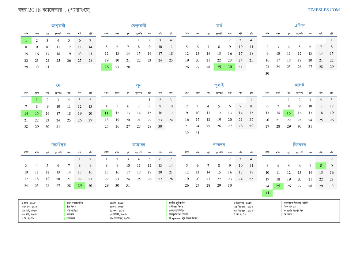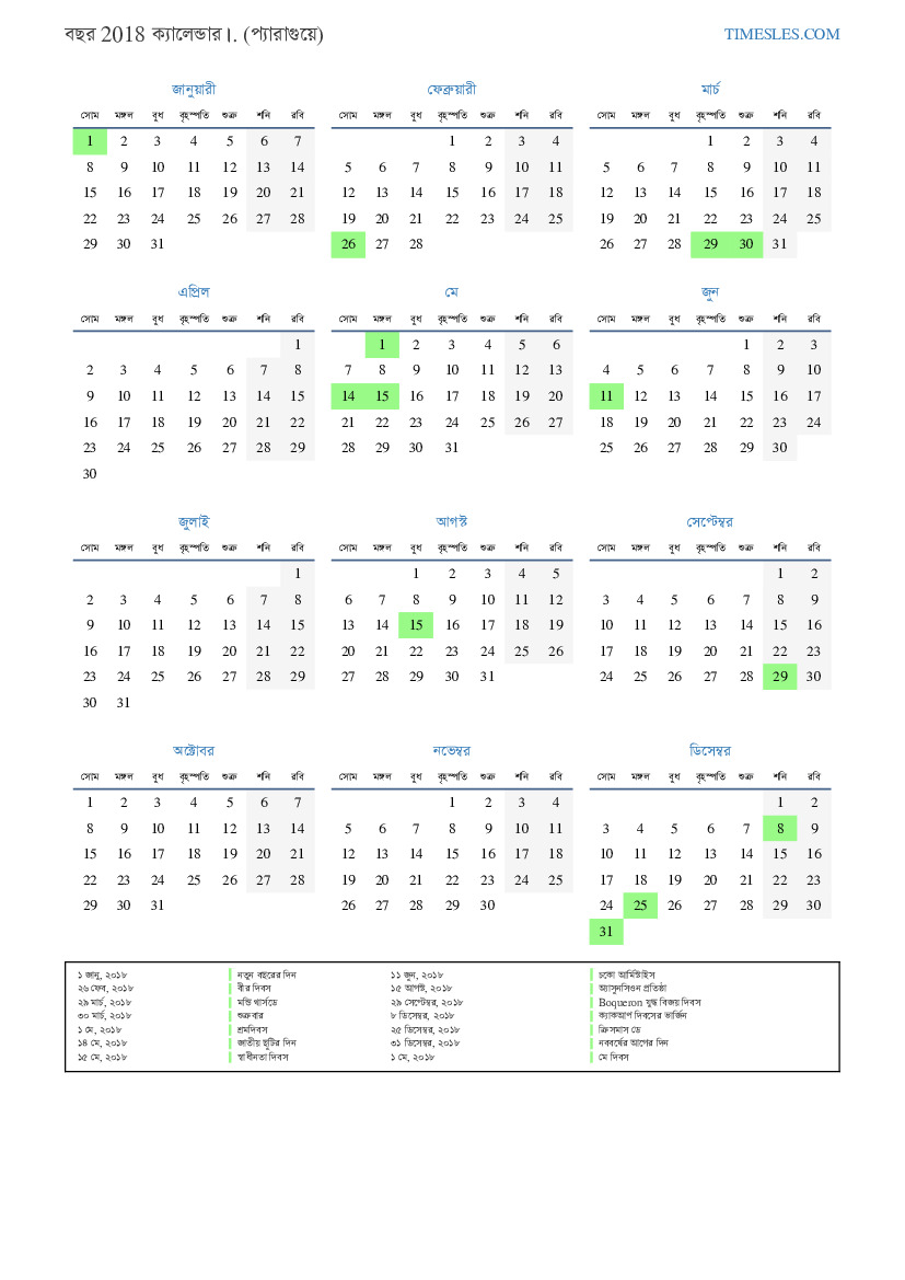 ১৪ মে, ২০১৮ জাতীয় ছুটির দিন