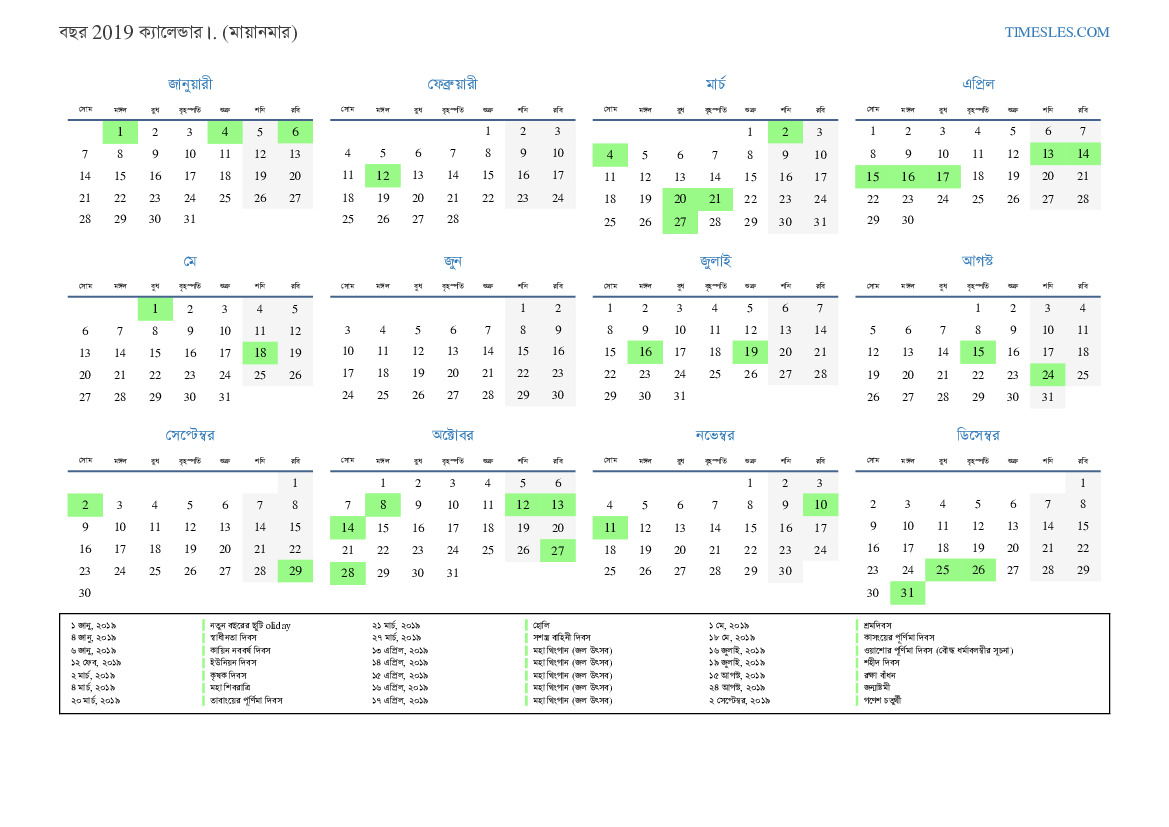 ১ জানু, ২০১৯ নতুন বছরের ছুটি oliday