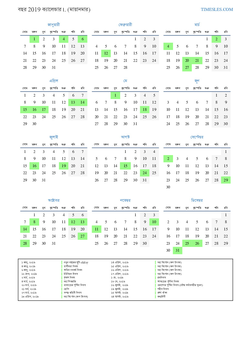 ২৬ ডিসেম্বর, ২০১৯ কায়িন নববর্ষ দিবস
