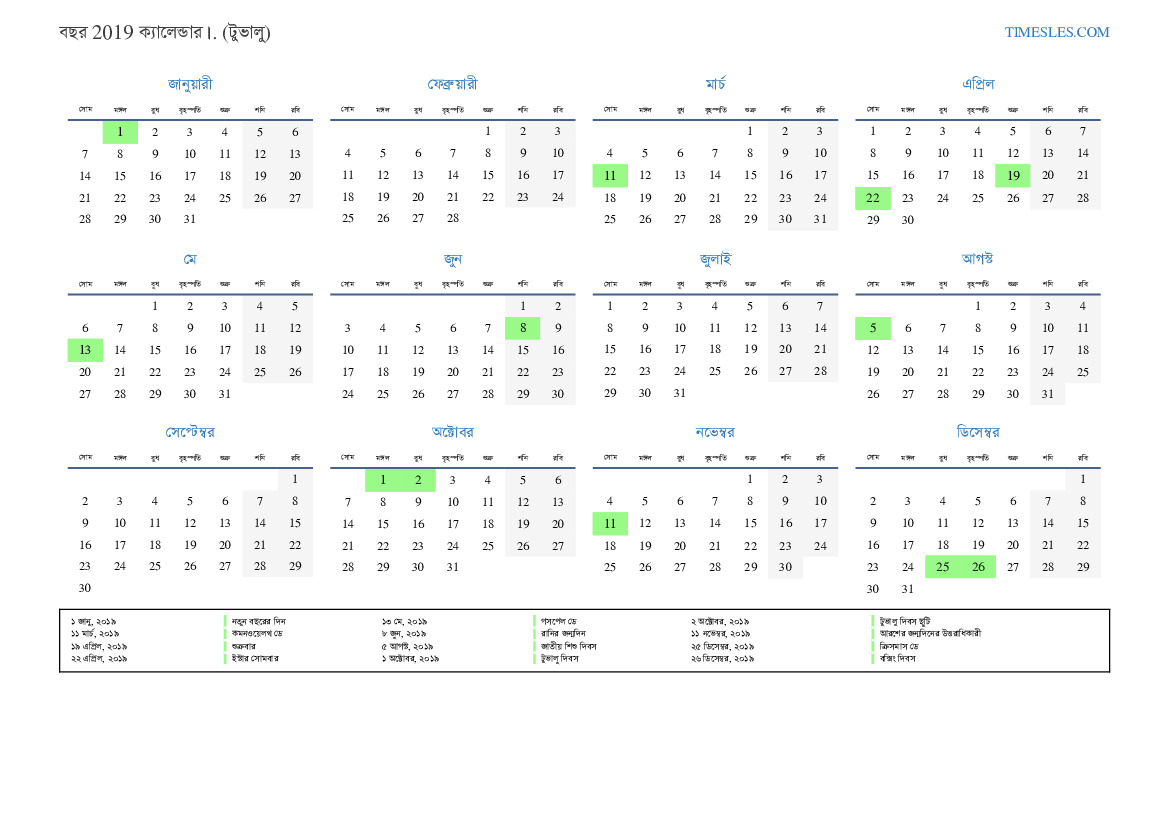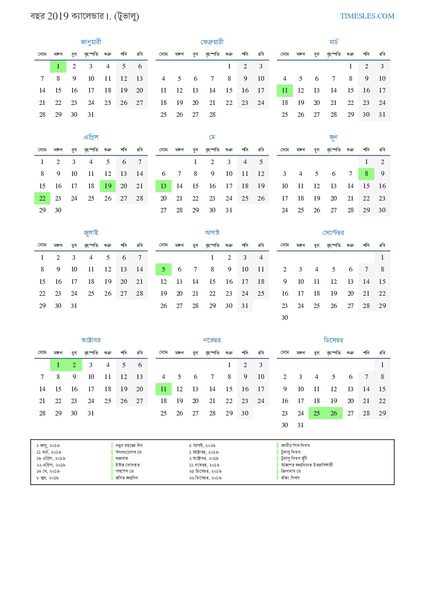২ অক্টোবর, ২০১৯ টুভালু দিবস ছুটি