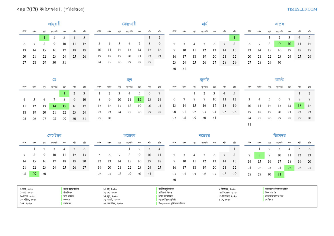 ১৪ মে, ২০২০ জাতীয় ছুটির দিন