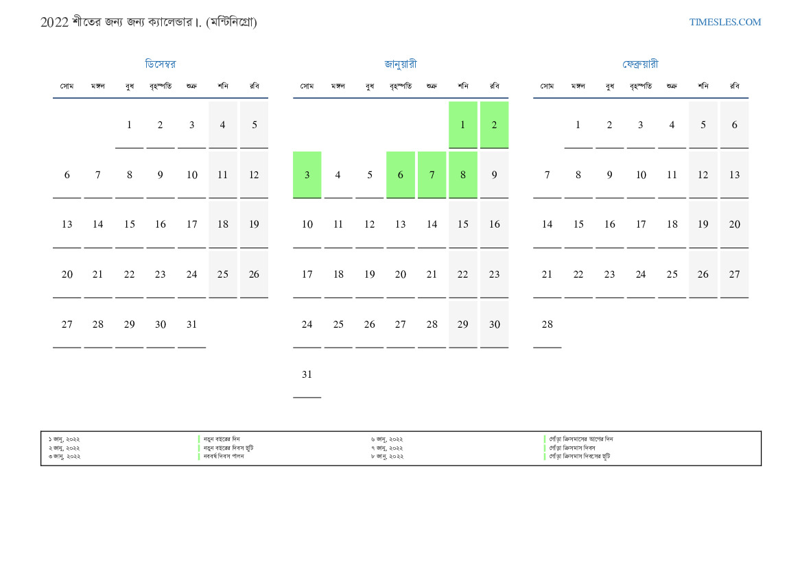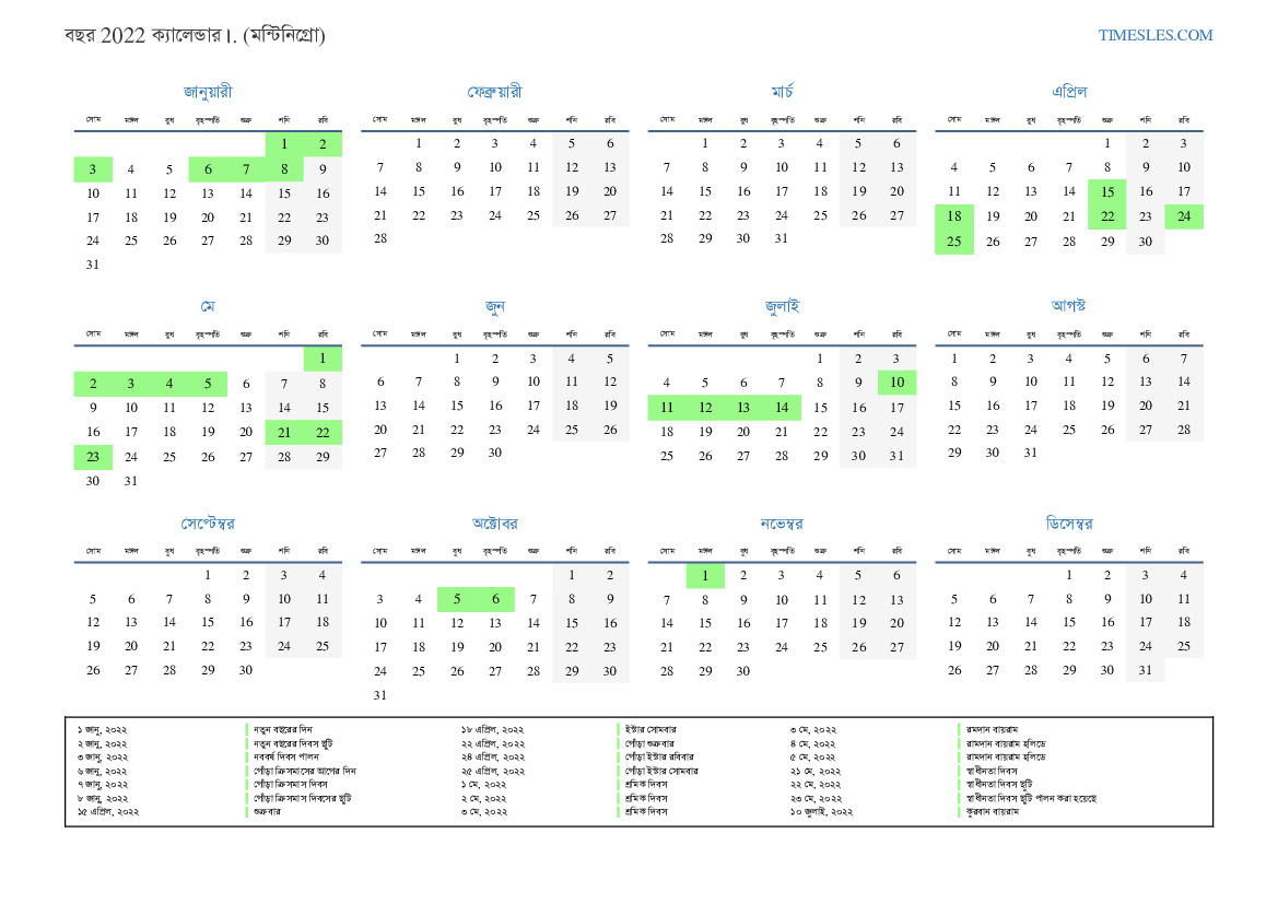 ২ জানু, ২০২২ নতুন বছরের দিবস ছুটি