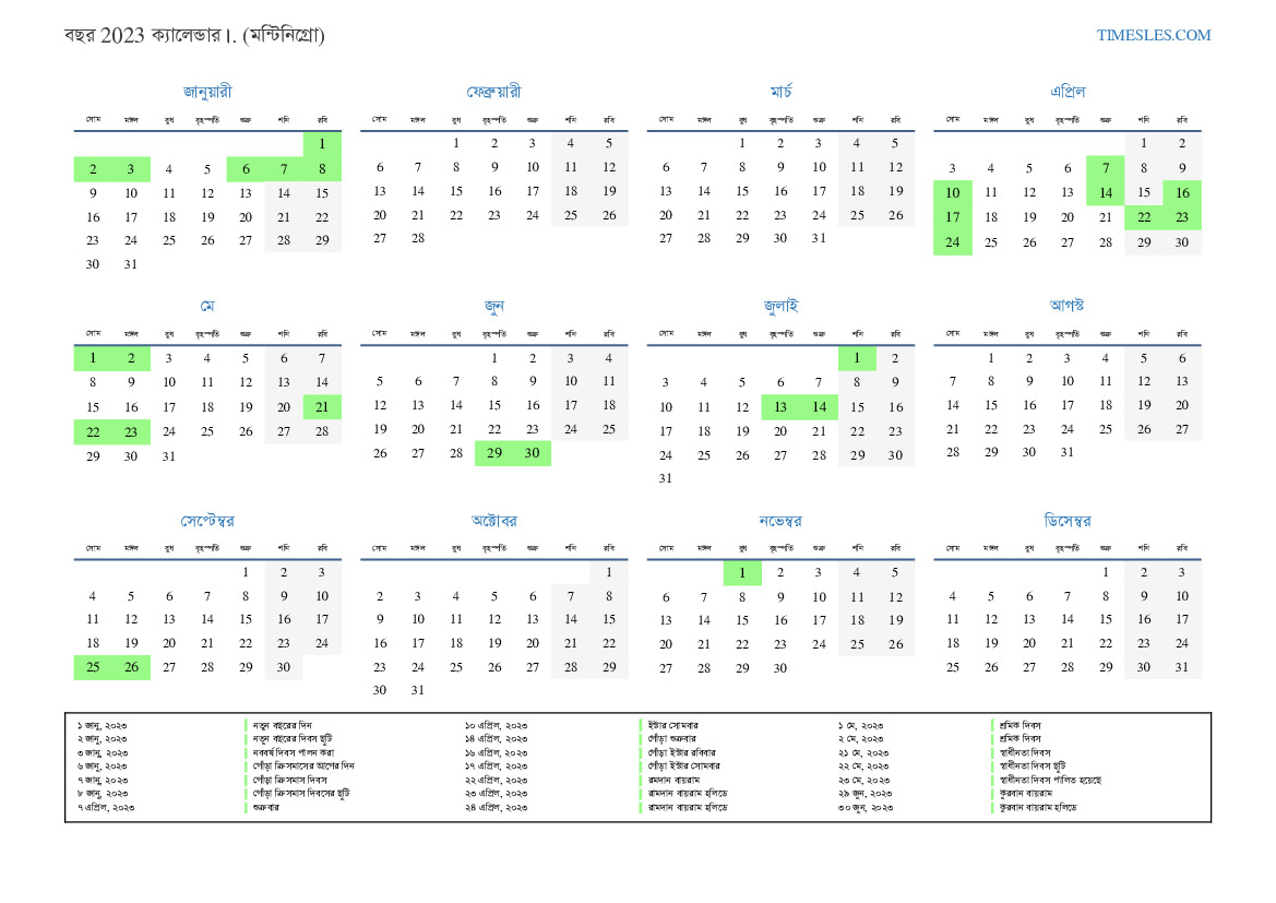 ২ জানু, ২০২৩ নতুন বছরের দিবস ছুটি