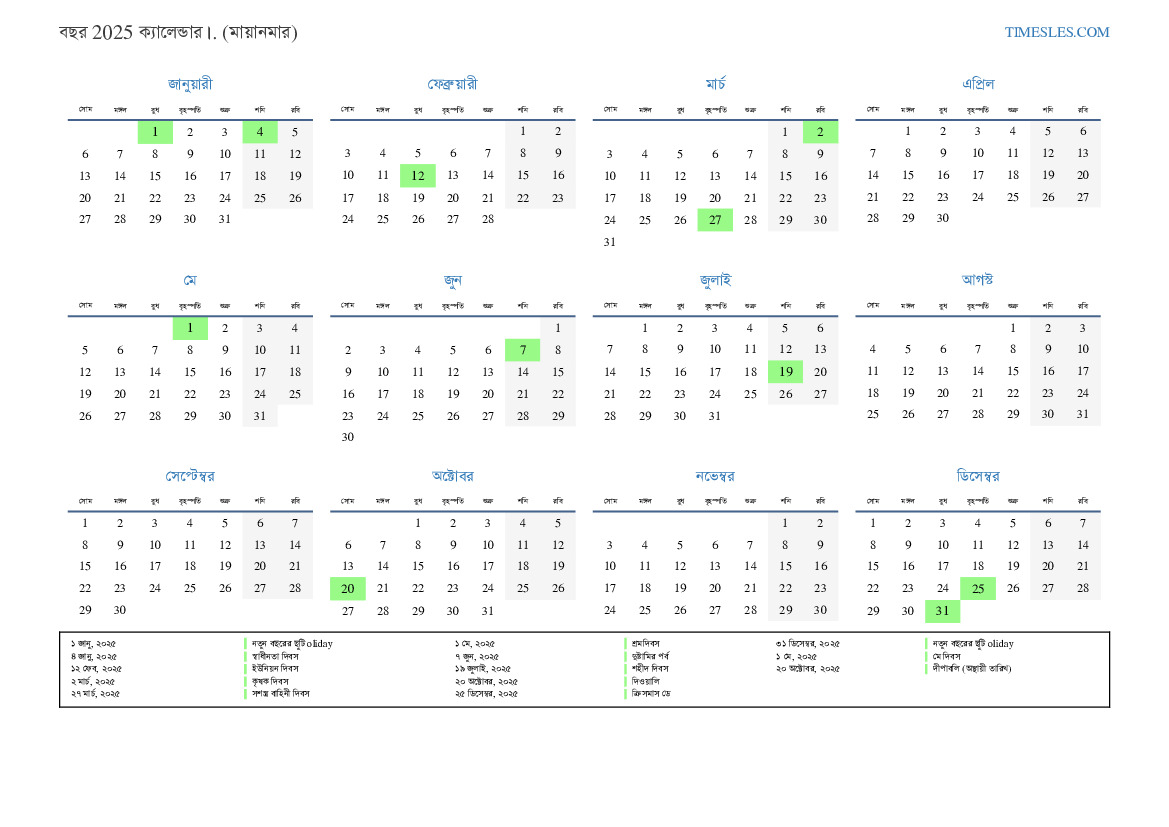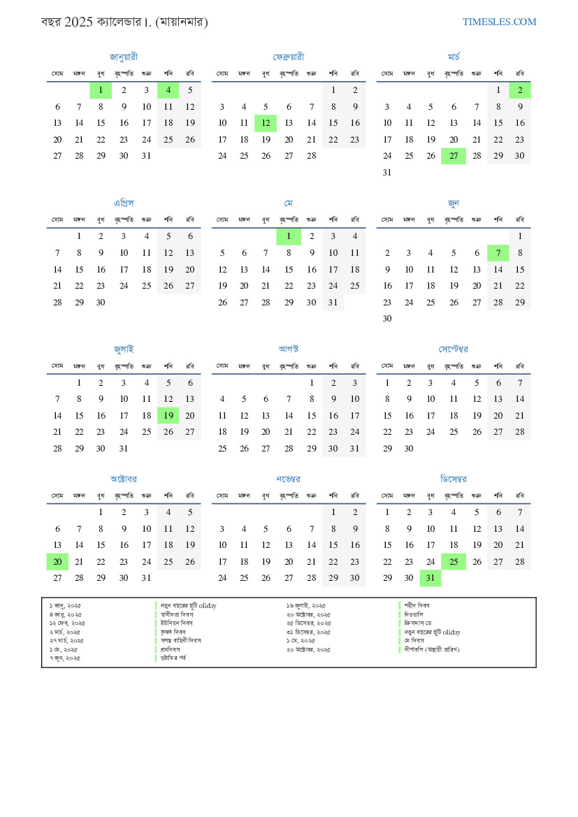 ১ জানু, ২০২৫ নতুন বছরের ছুটি oliday