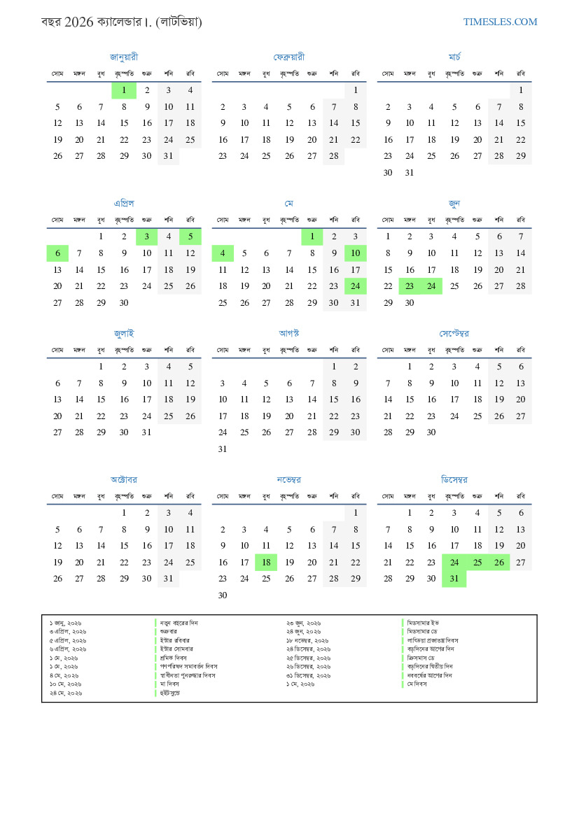 ১৮ নভেম্বর, ২০২৬ লাত্ভিয়া প্রজাতন্ত্র দিবস