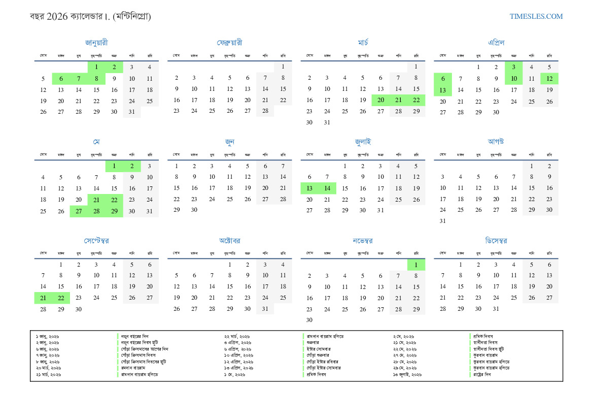 ২ জানু, ২০২৬ নতুন বছরের দিবস ছুটি