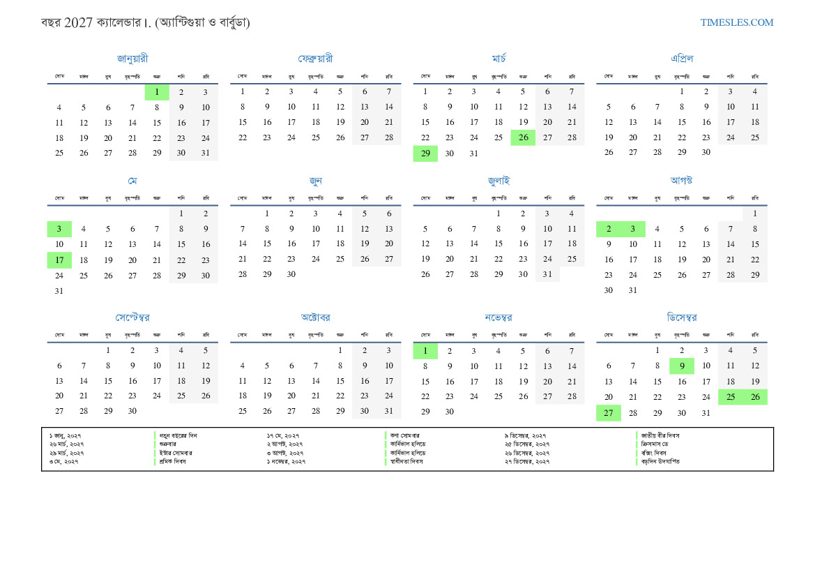 ১ জানু, ২০২৭ নতুন বছরের দিন