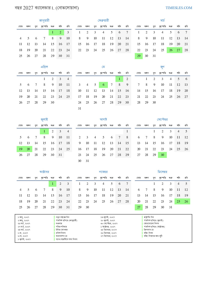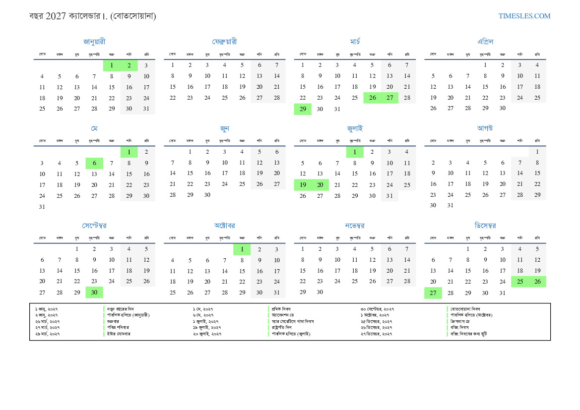 ১ জানু, ২০২৭ নতুন বছরের দিন