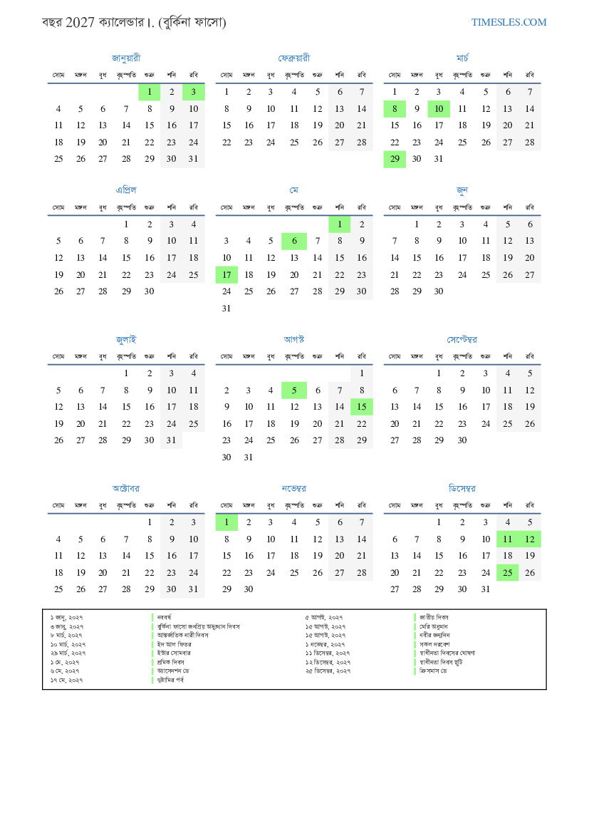 ১২ ডিসেম্বর, ২০২৭ স্বাধীনতা দিবস ছুটি