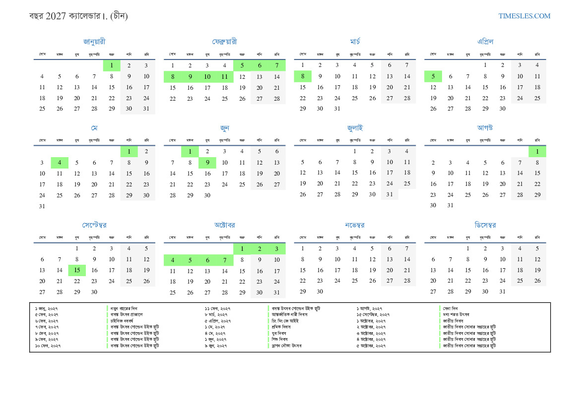১১ ফেব, ২০২৭ বসন্ত উত্সব গোল্ডেন উইক ছুটি