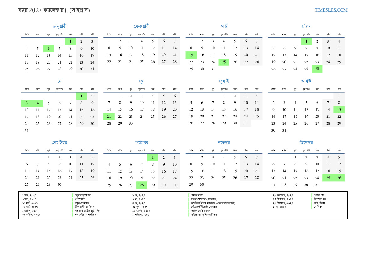 ১ জানু, ২০২৭ নতুন বছরের দিন