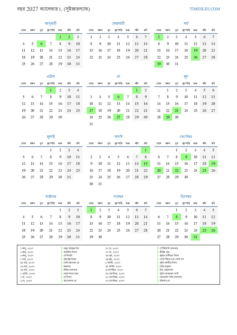 ১ জানু, ২০২৭ নতুন বছরের দিন
