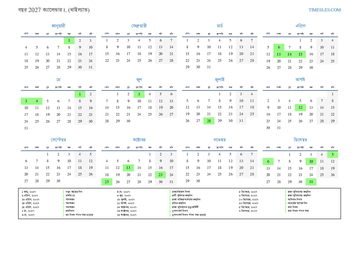 ১ জানু, ২০২৭ নতুন বছরের দিন