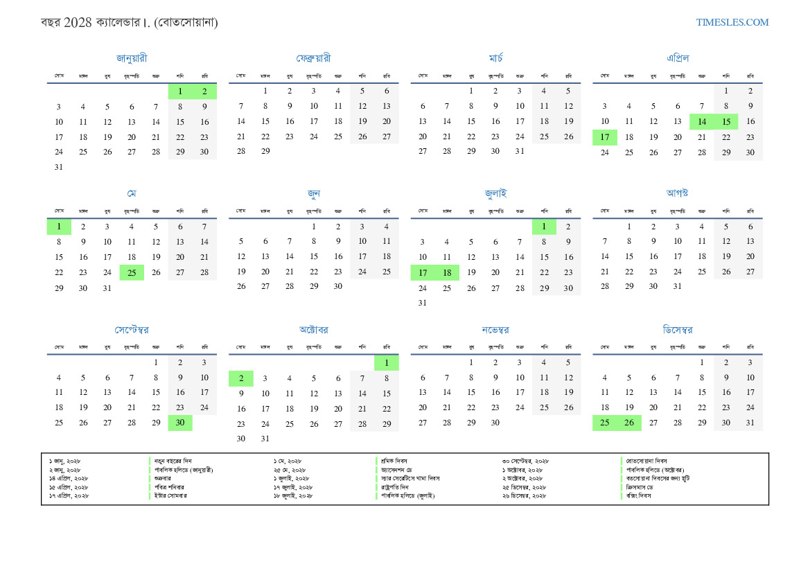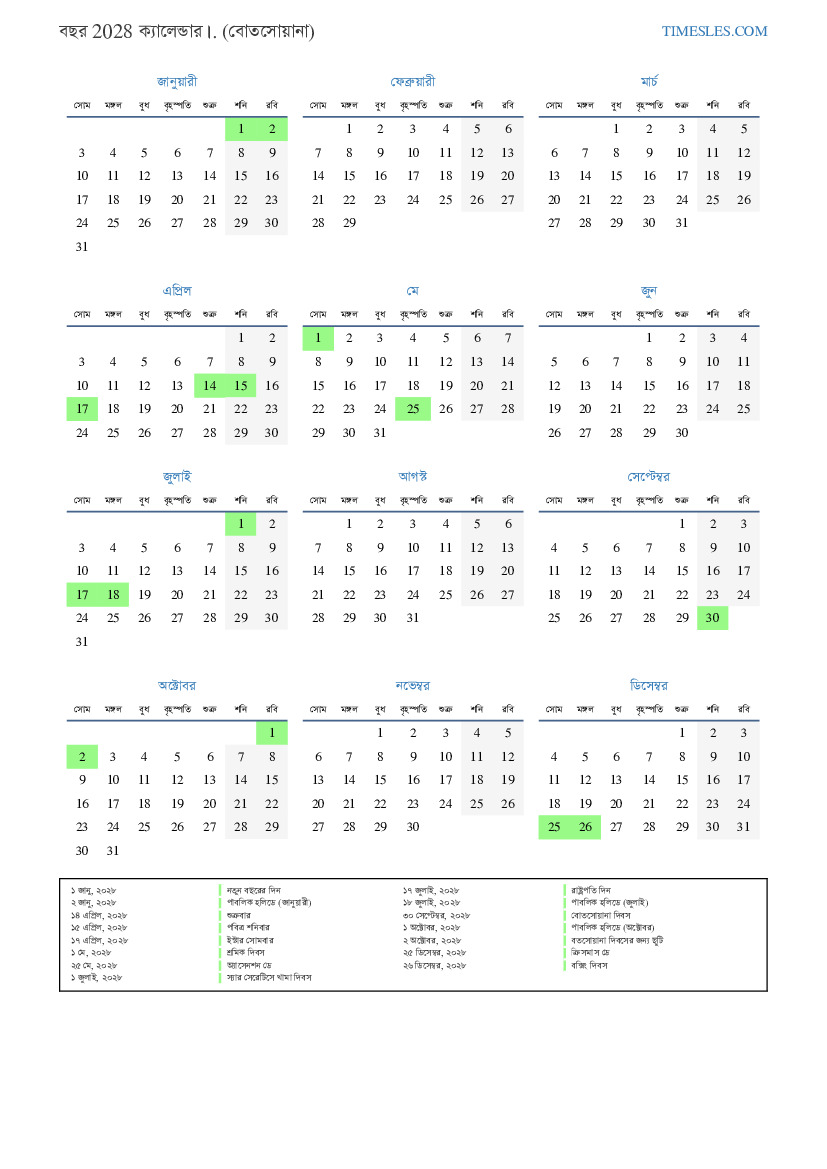 ১ জানু, ২০২৮ নতুন বছরের দিন