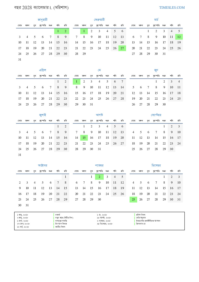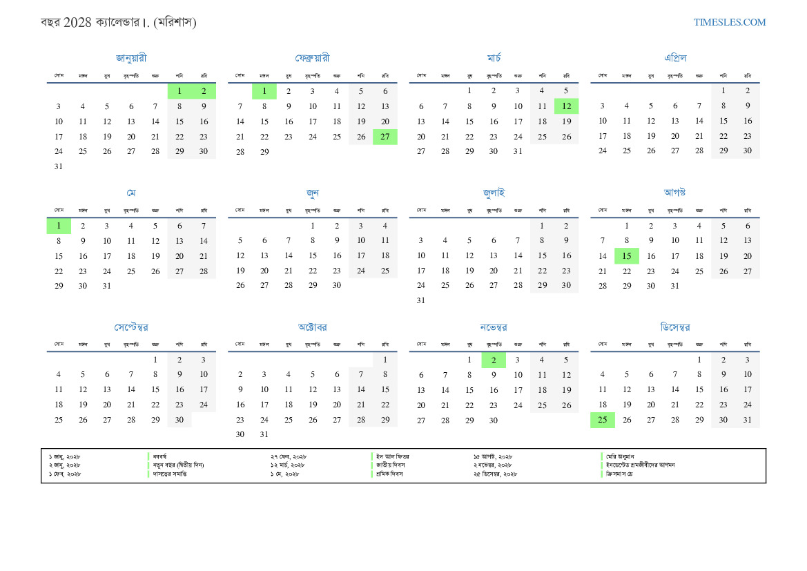১২ মার্চ, ২০২৮ জাতীয় দিবস