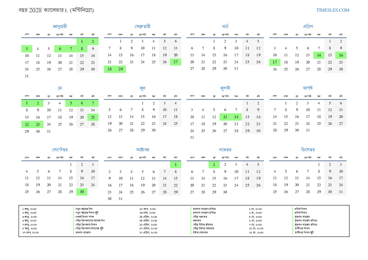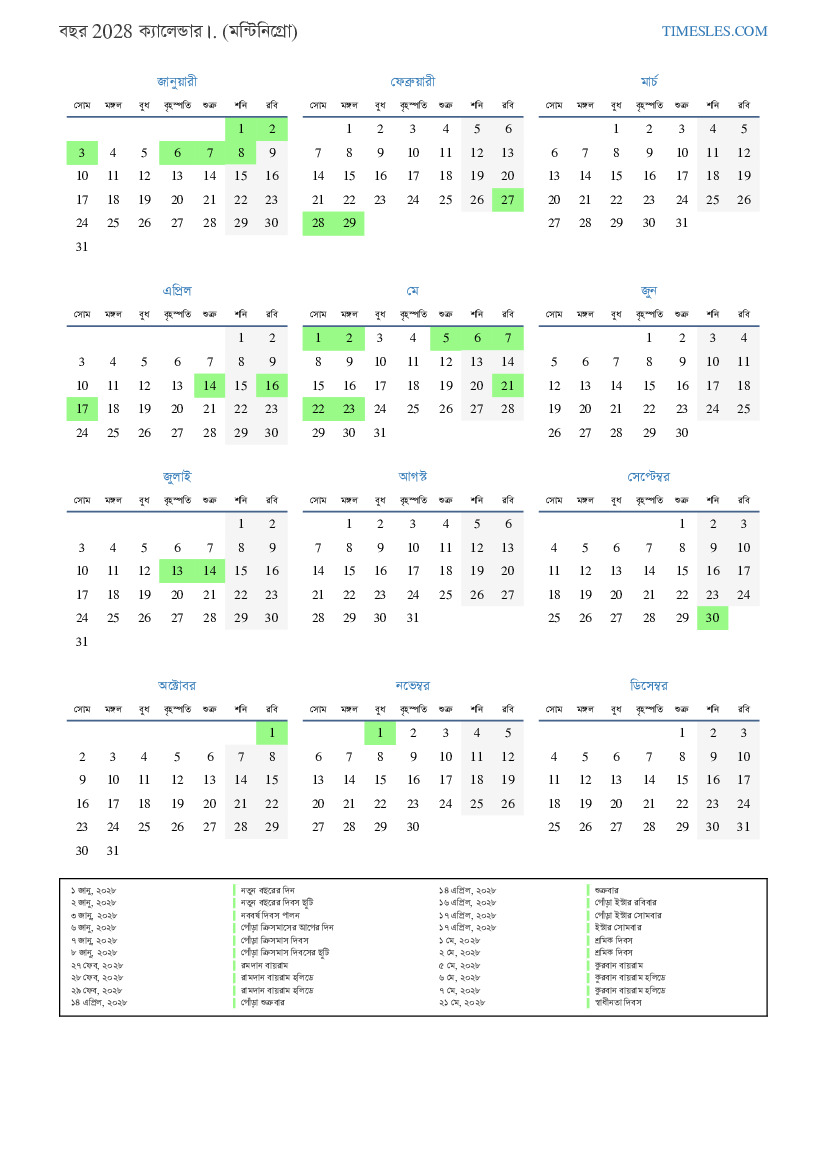 ২ জানু, ২০২৮ নতুন বছরের দিবস ছুটি