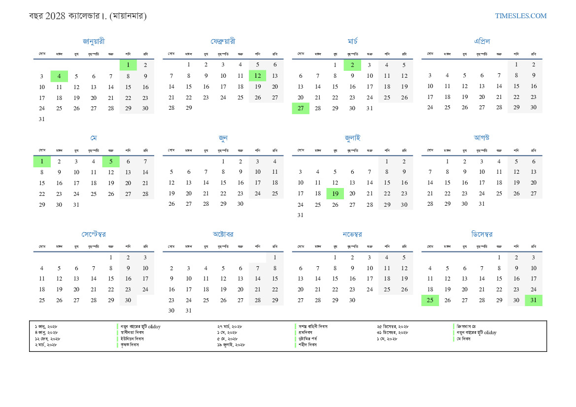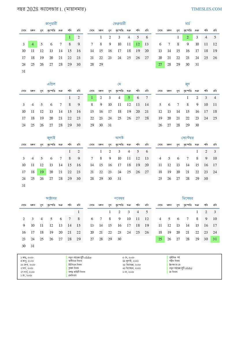 ১ জানু, ২০২৮ নতুন বছরের ছুটি oliday