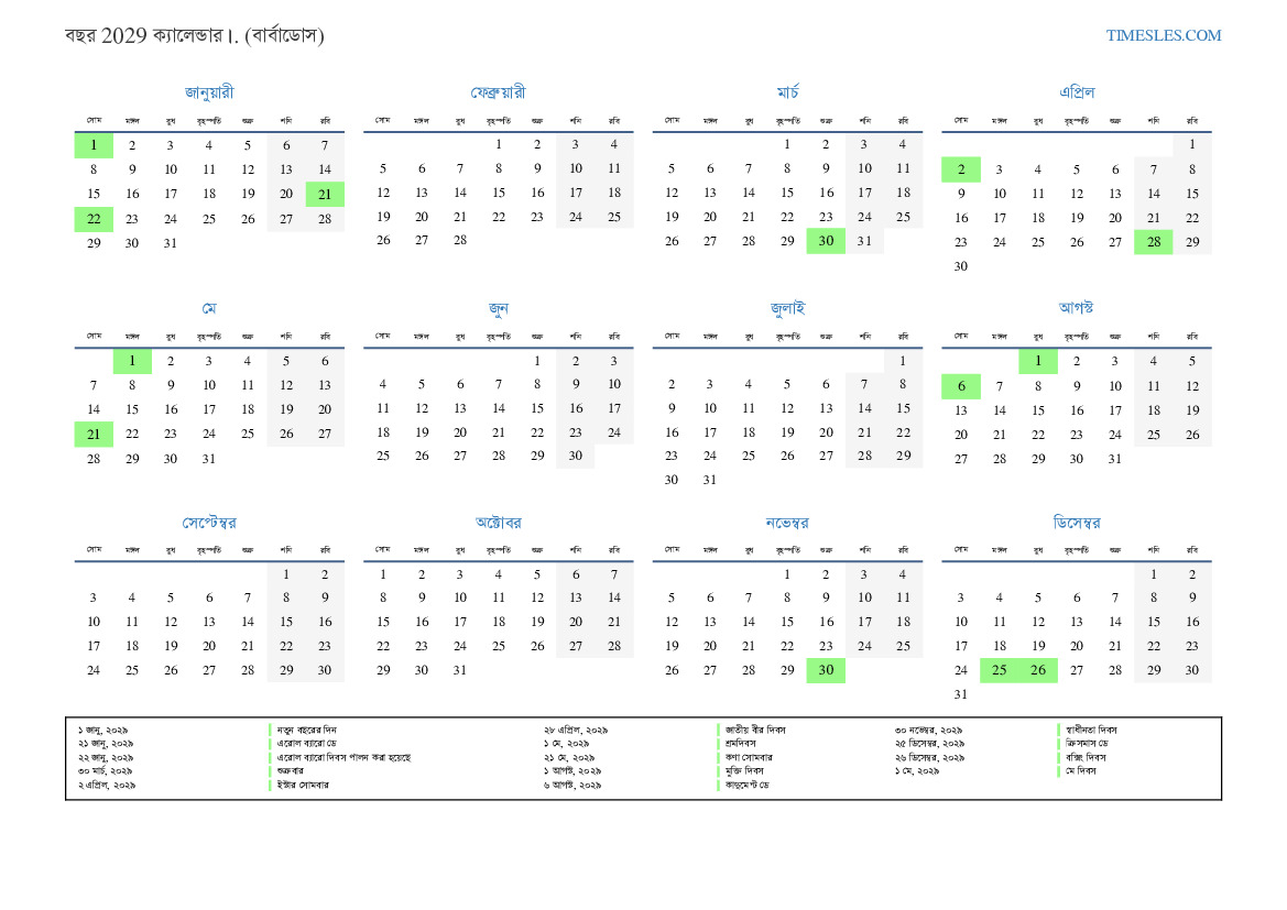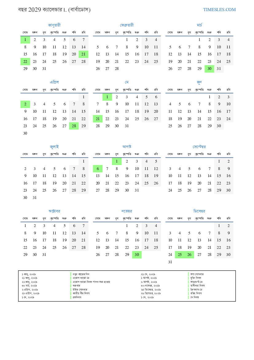 ১ জানু, ২০২৯ নতুন বছরের দিন