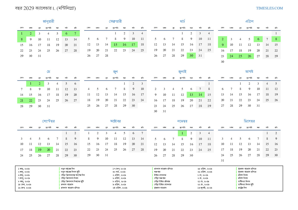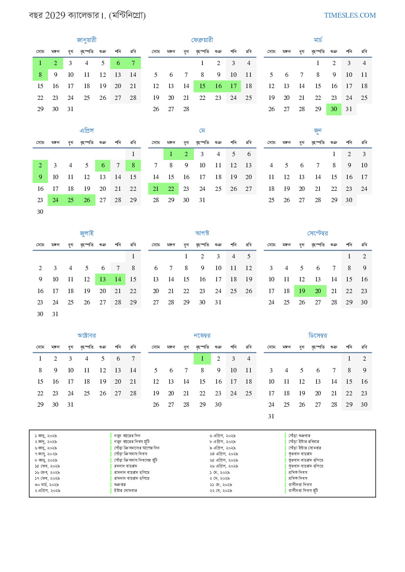 ২ জানু, ২০২৯ নতুন বছরের দিবস ছুটি