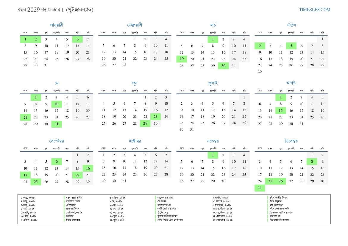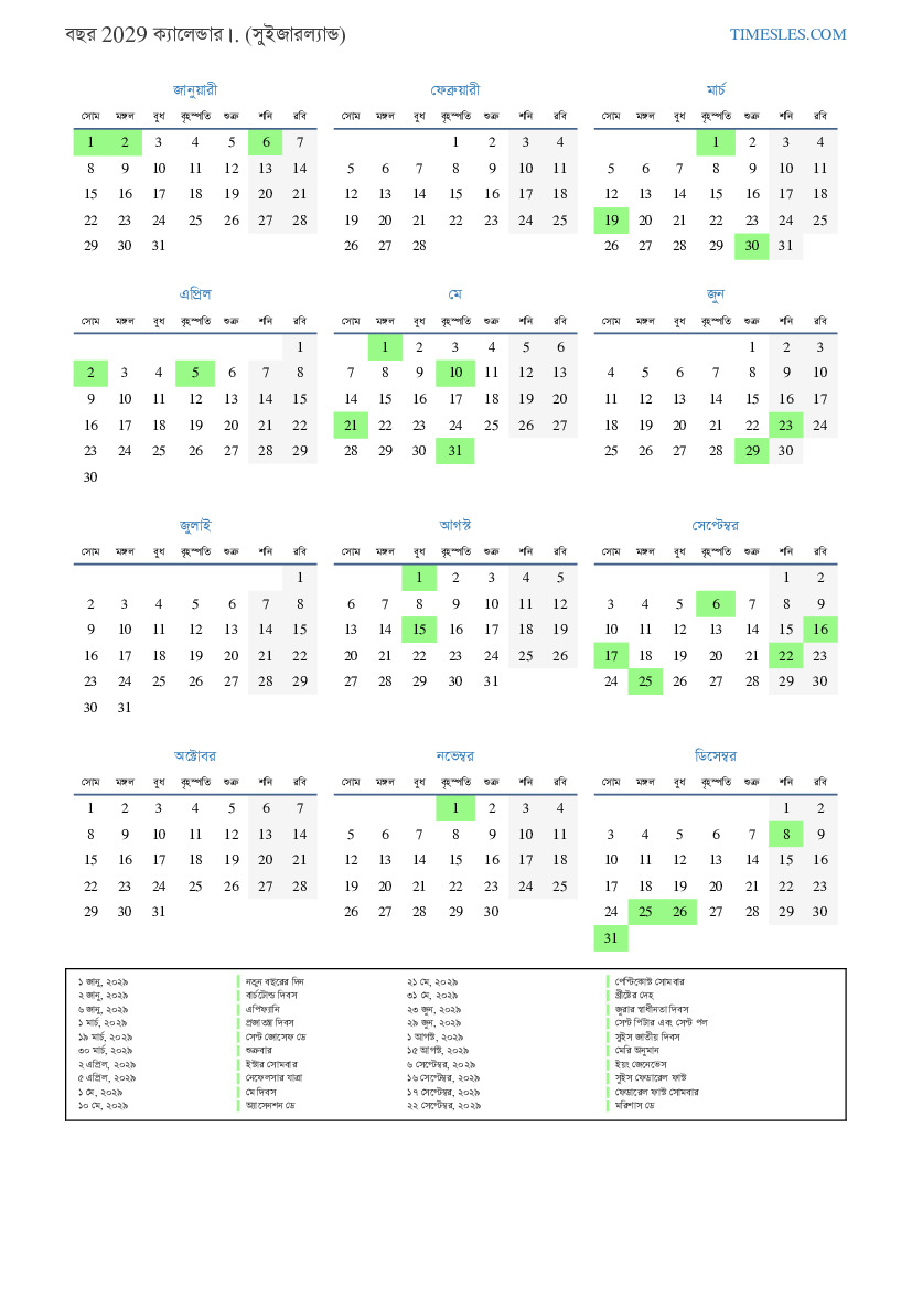 ১ জানু, ২০২৯ নতুন বছরের দিন