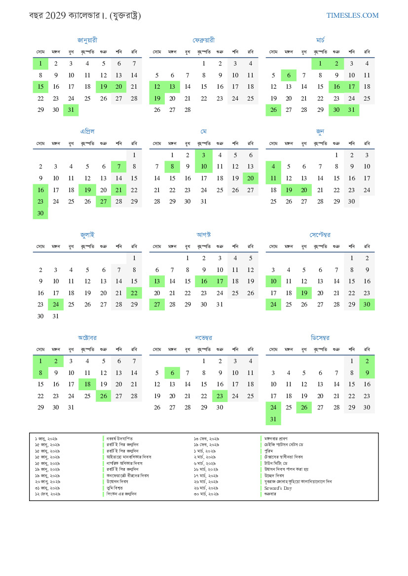 ১ জানু, ২০২৯ নতুন বছরের দিন