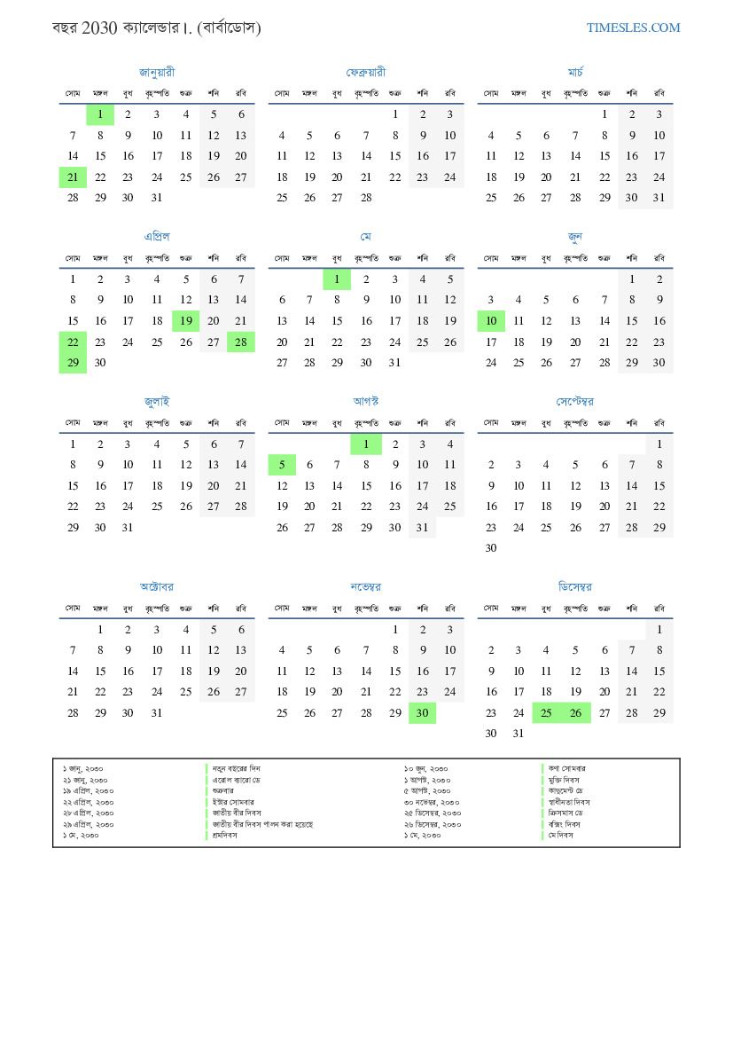 ১ জানু, ২০৩০ নতুন বছরের দিন