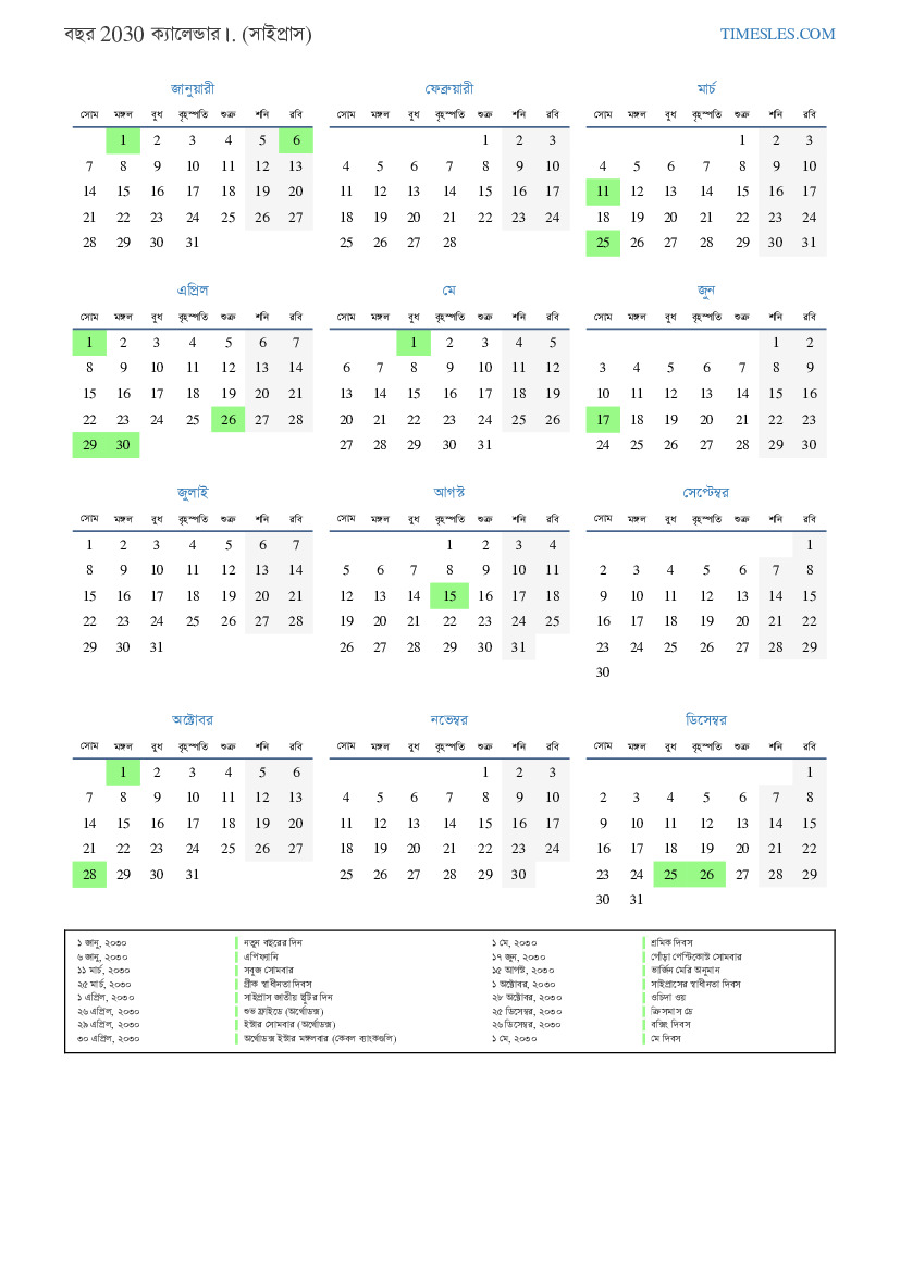 ১ জানু, ২০৩০ নতুন বছরের দিন