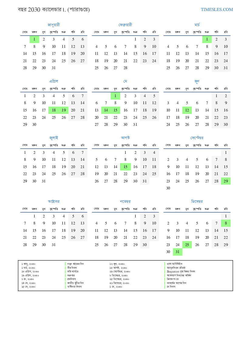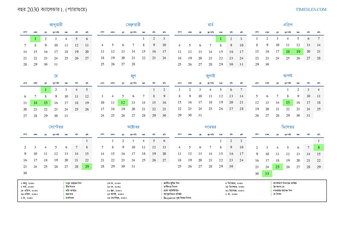 ১ জানু, ২০৩০ নতুন বছরের দিন