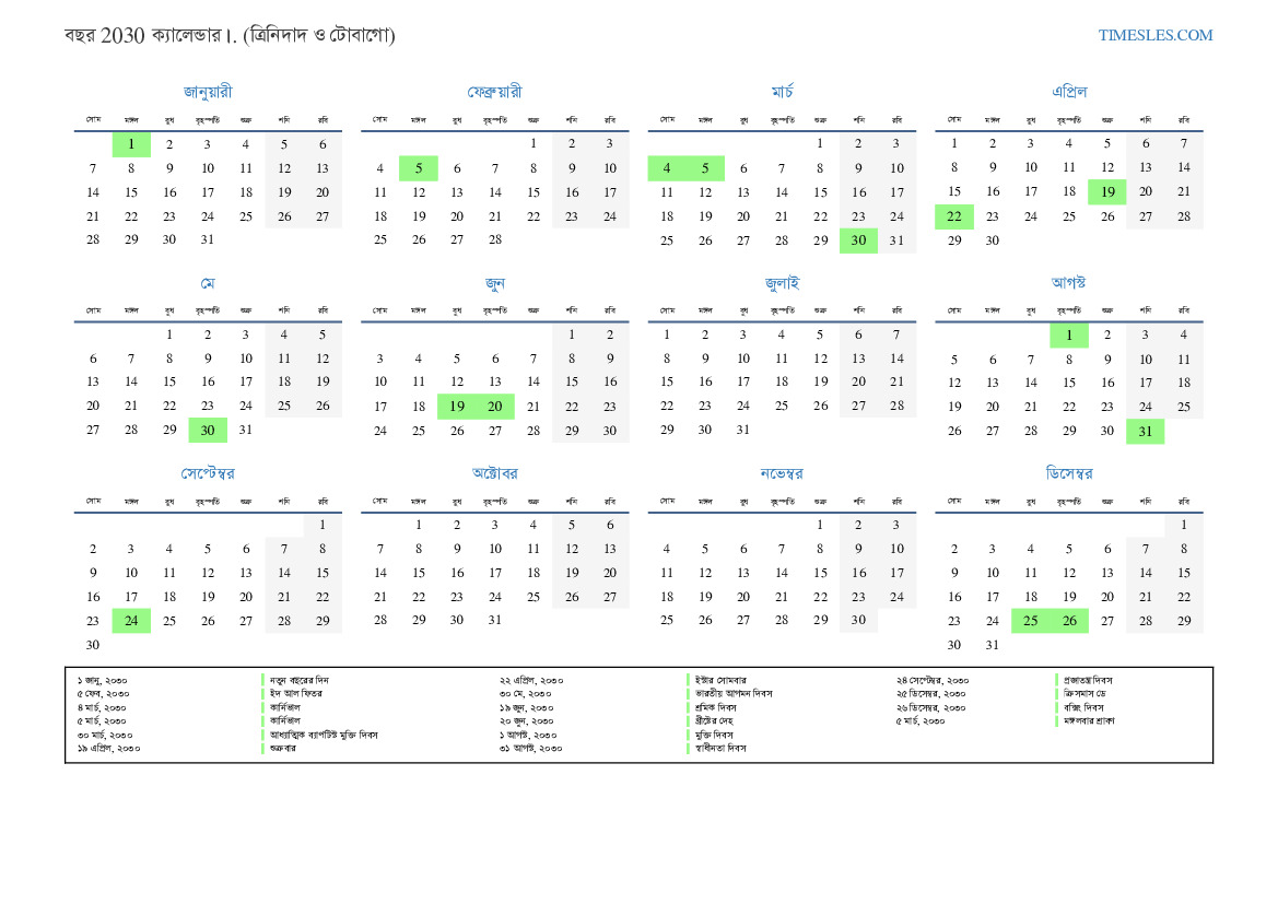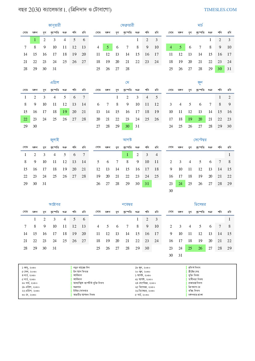 ১ জানু, ২০৩০ নতুন বছরের দিন