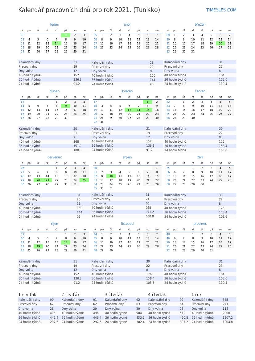srpen 2021 pracovní dny kalendář s týdny. Pětidenní pracovní týden. Na srpen 2021 je v Tunisku 2 svátky a dny volna. Kalendář s pracovní dobou a odkládáním svátků.